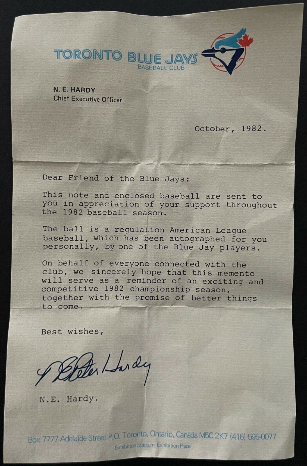Letter is in very good condition; notable creasing throughout but no rips or tears - Follow us on Instagram and Facebook (glorydayscollectibles) to keep yourself updated on our upcoming auctions and events