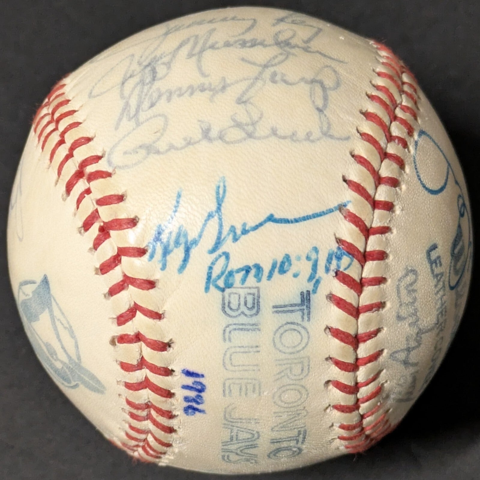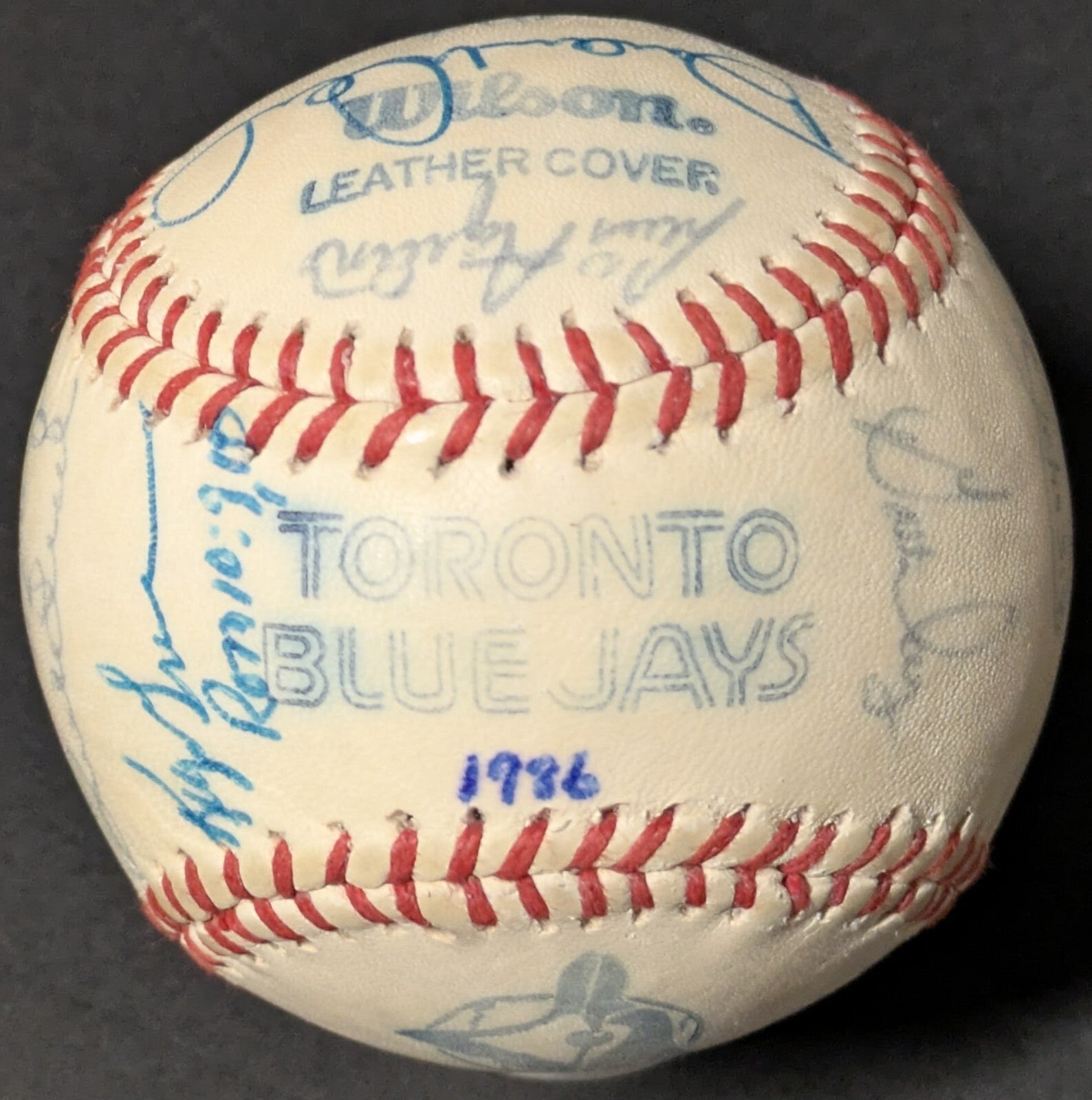 - Toronto Blue Jays branded Wilson baseball signed by 24 members of the 1986 roster, obtained directly from the collection of former Blue Jays pitcher Duane Ward