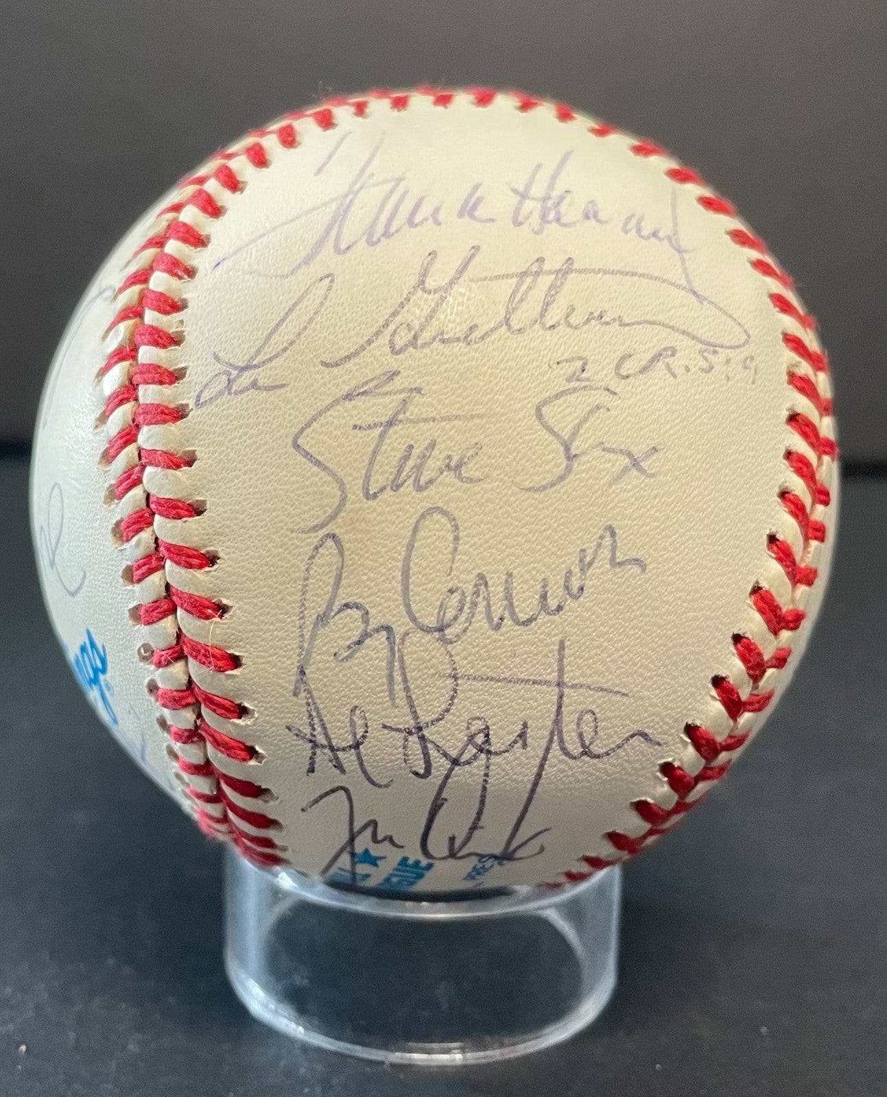 - Signatures include: Dallas Green MGR SS, Lee Elia coach, Walt Terrell, Rich Dotson, Dale Mohorcic, Andy Hawkins, Frank Howard, Lee Guetterman, Steve Sax, Bill Connors coach, Al Leiter, Jamie Quirk, Alvaro Espinoza, Pat Corrales, Ken Phelps, Don Mattingly, Steve Balboni, Charlie Fox coach, Tom Brookens, Don Slaught, Tommy John, Lance McCullers, John Stearns and Dave Righetti