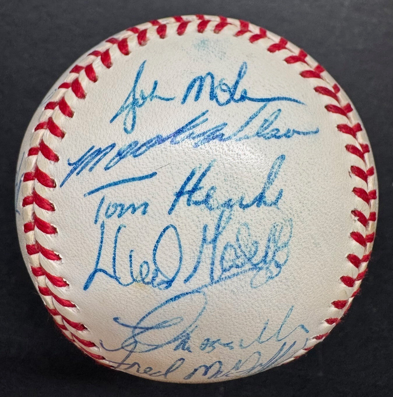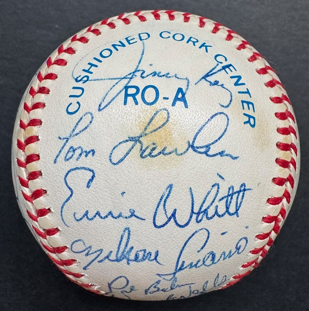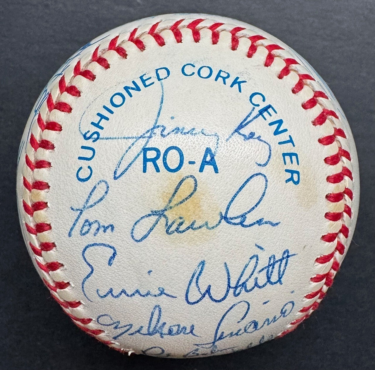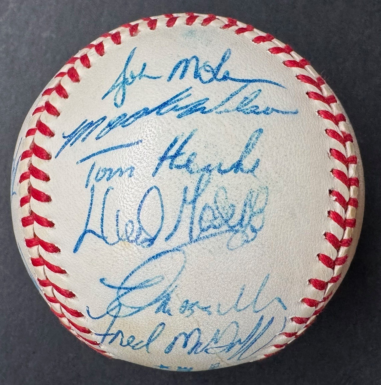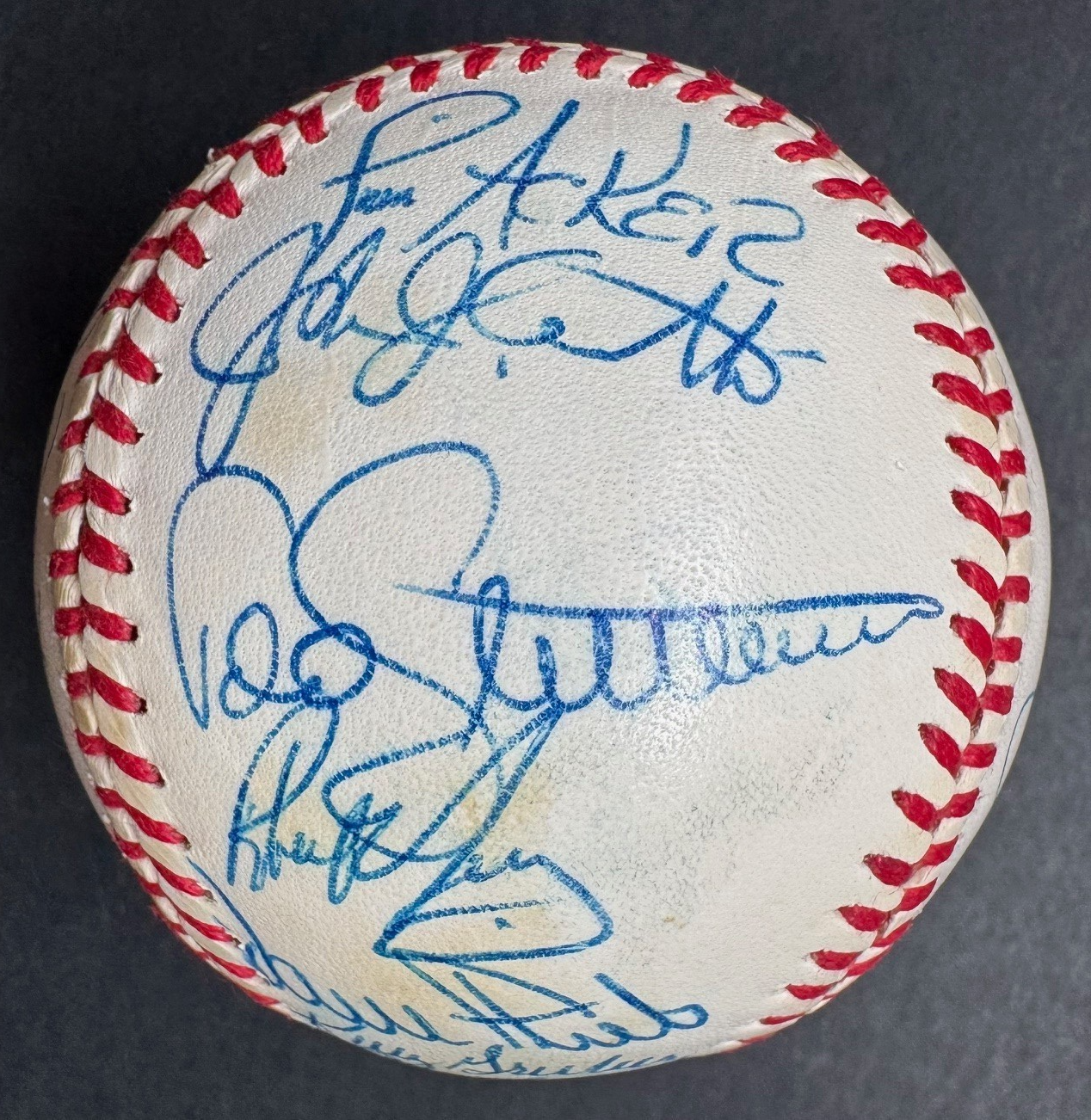 • Signatures of Jimmy Key, Tom Lawless, Ernie Witt, Nelson Liriano, Pat Borders, David Wells, Cito Gaston manager, John Sullivan coach, George Bell, Mauro Gozzo, Duane Ward, John McLaren coach, Mookie Wilson, Tom Henke, Lloyd Moseby, Jeff Musselman, HOFer Fred McGriff, Rance Mulliniks, Kelly Gruber, Dave Stieb, Rob Ducey, Todd Stottlemyre, John Cerutti and Jim Acker