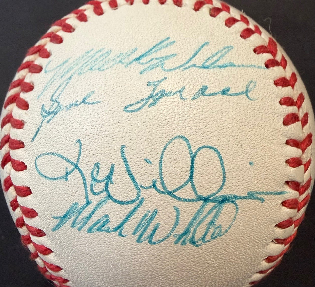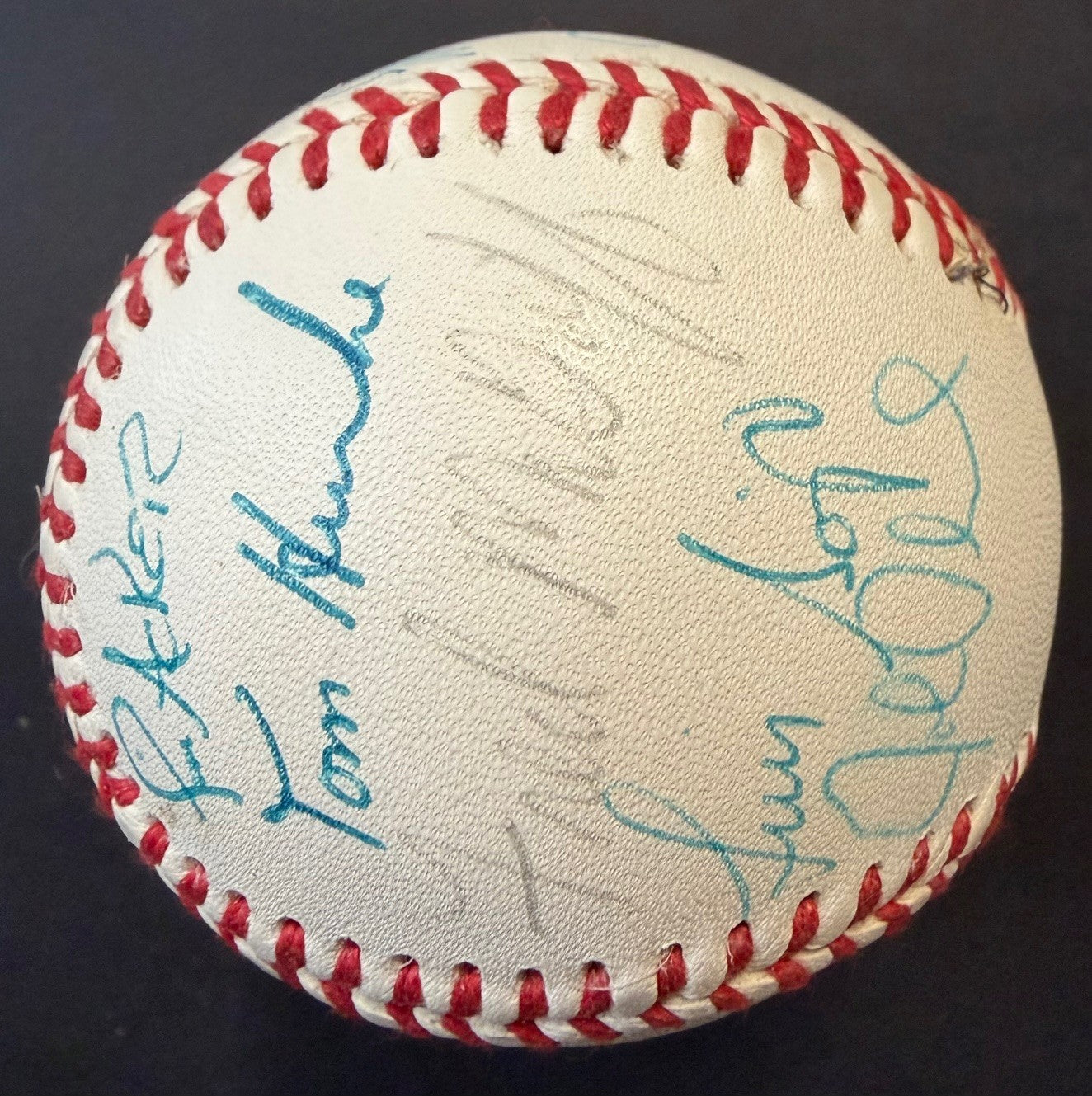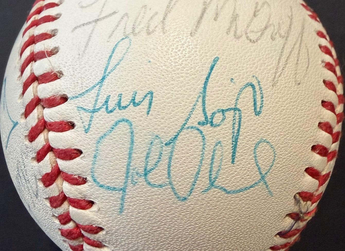 - Signatures include: sweet spot manager Cito Gaston, John Olerud, Fred McGriff HOFer, Tom Henke, Jim Acker, Hector Torres, Todd Stottlemyre, Mike Squires, Galen Cisco, Pat Borders, Greg Myers, Frank Wills, Mark Whiten, Glenallen Hill, Mookie Wilson, Gene Tenace, Ken Williams and Mark Whiten