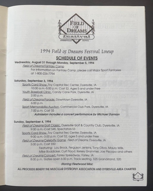 - The Field of Dreams Festival was held from September 1-4, 1994 in Dyersville, Iowa, with Fleetwood Mac headlining the event