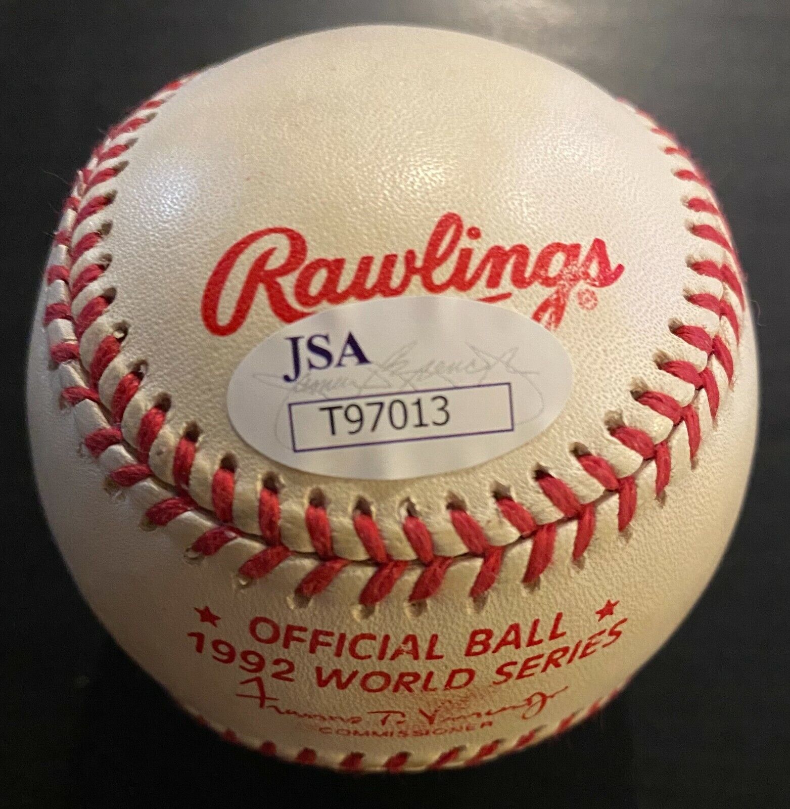 - Signed on an official 1992 World Series baseball