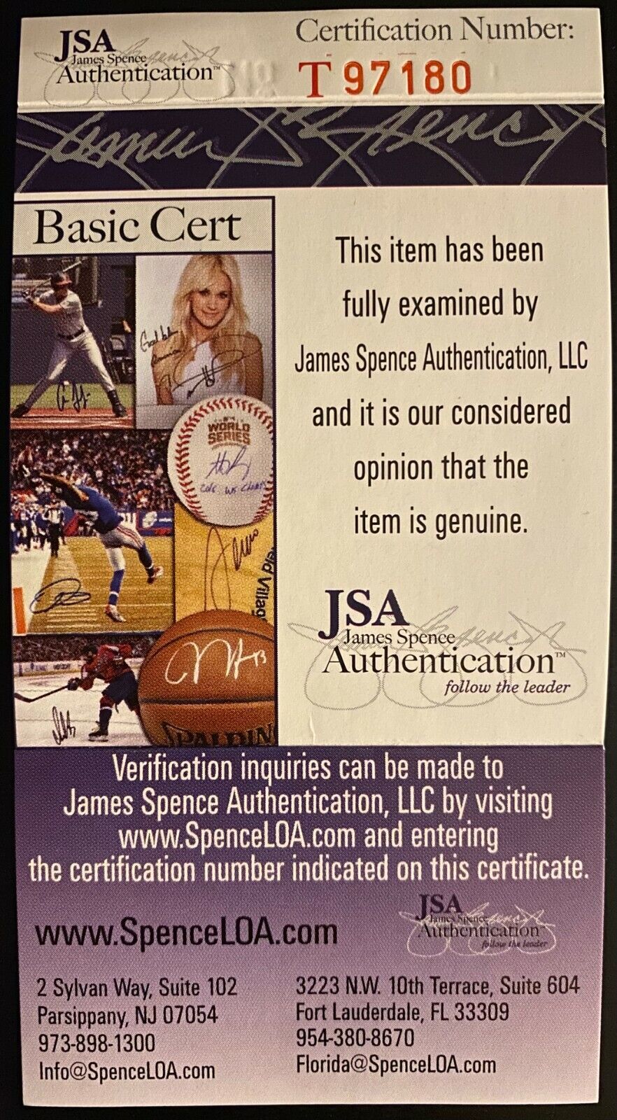 - Certificate of authenticity provided by JSA - Certification Number T97180