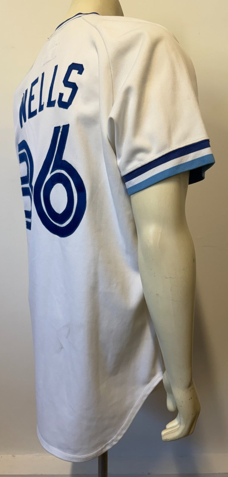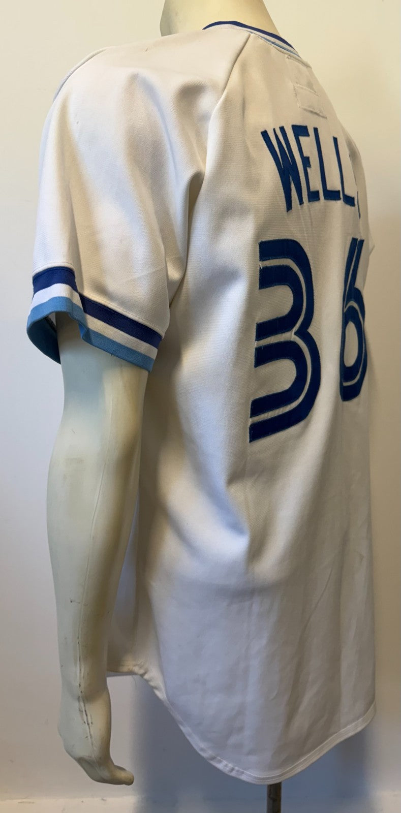 - 1988 David Wells game worn Set 1 home white Toronto Blue Jays jersey