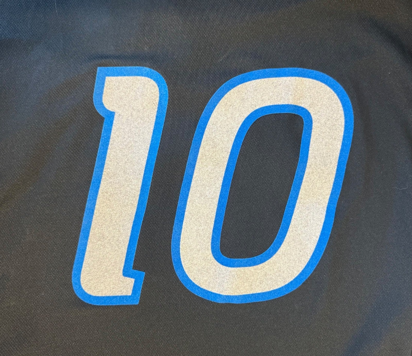 • Home version of jersey with white side panels and numbers heat pressed on