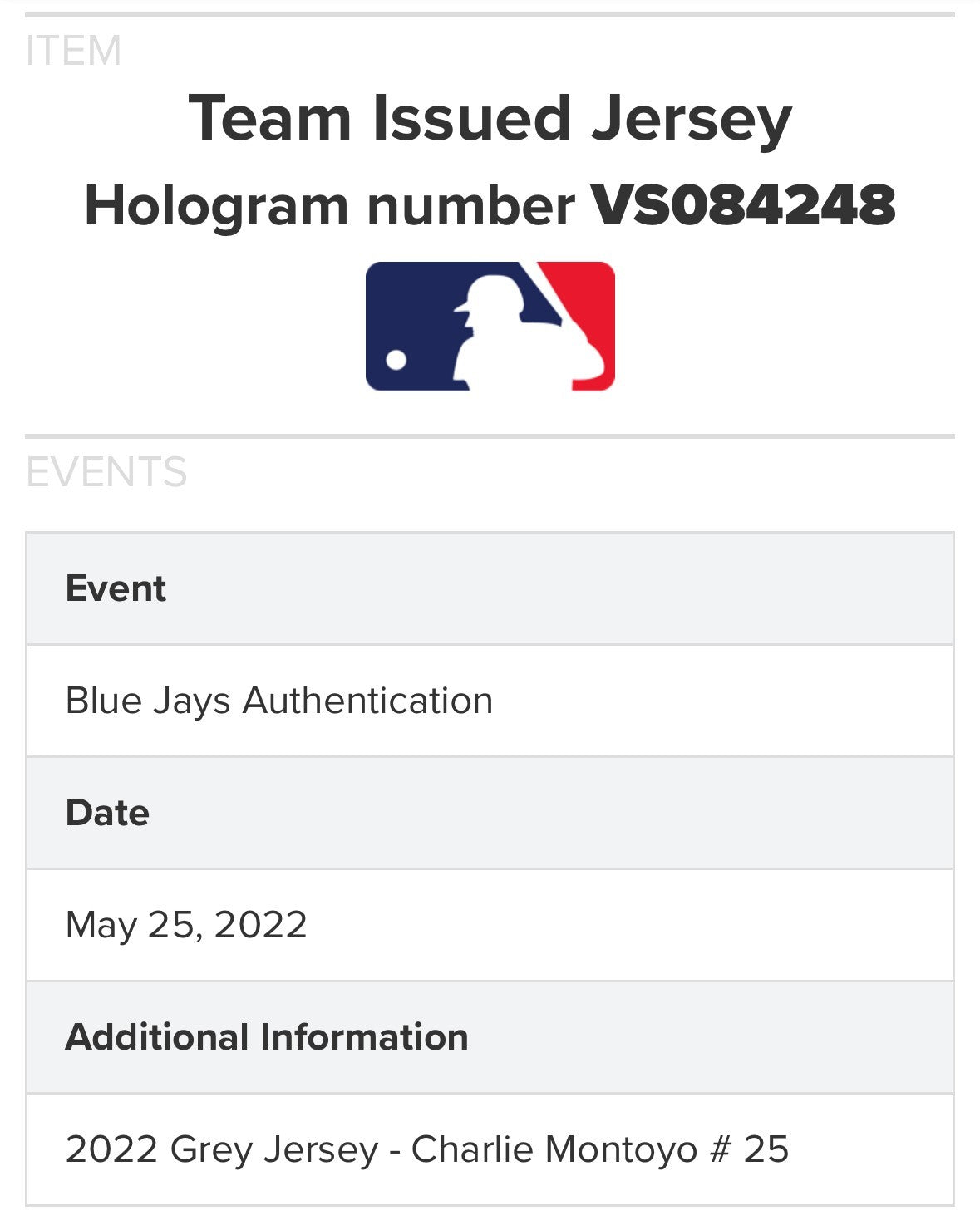 - 2022 Charlie Montoyo team issued Toronto Blue Jays manager jersey, authenticated by MLB