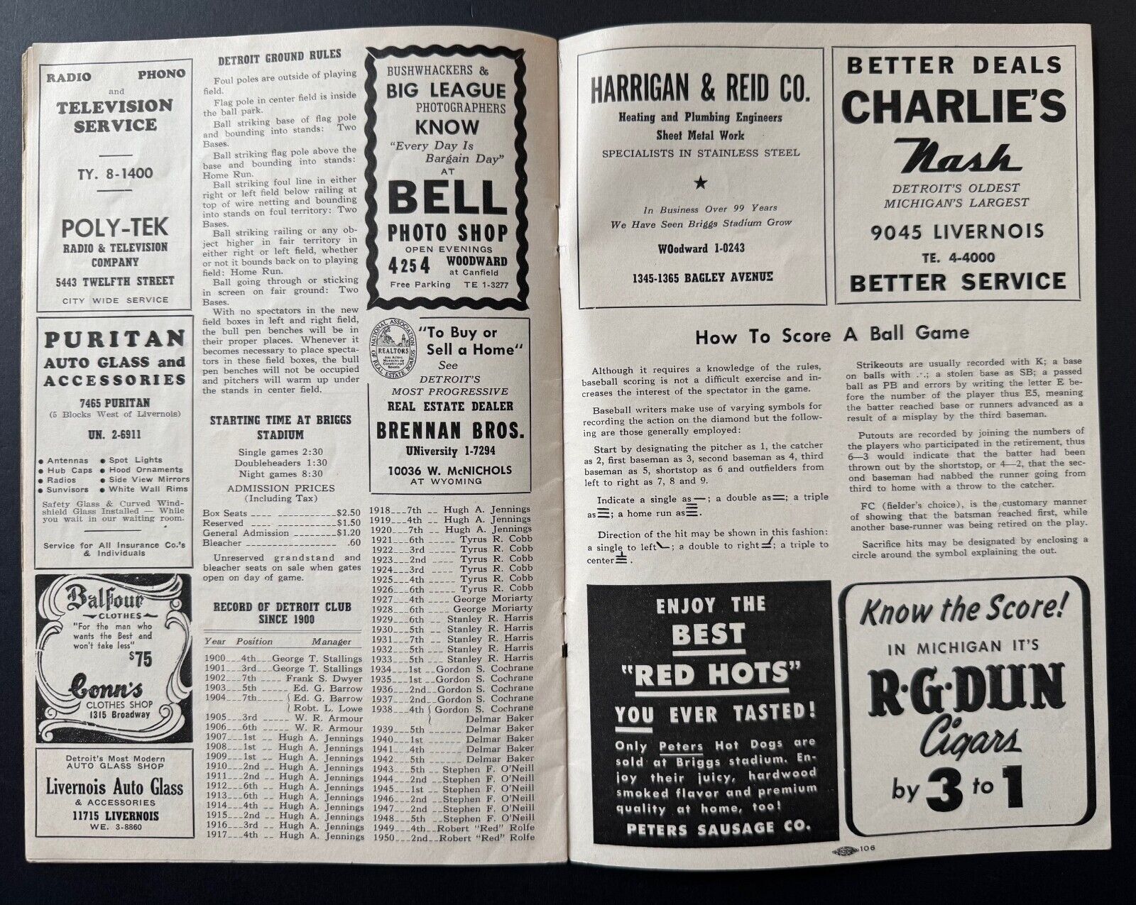 - 1951 Briggs Stadium Detroit Tigers Program