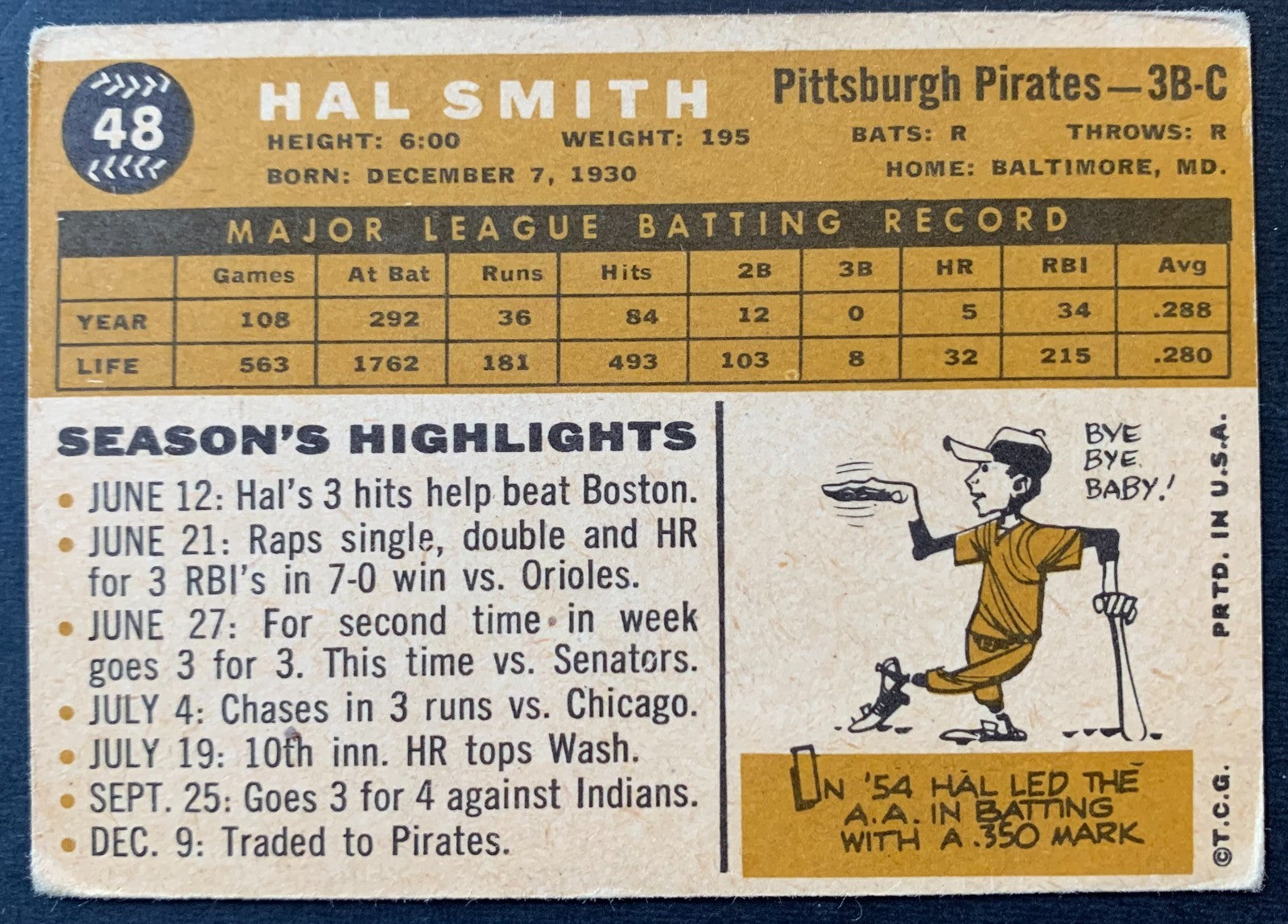- 1960 Topps #48 Hal Smith Pittsburgh Pirates Baseball Card MLB Catcher