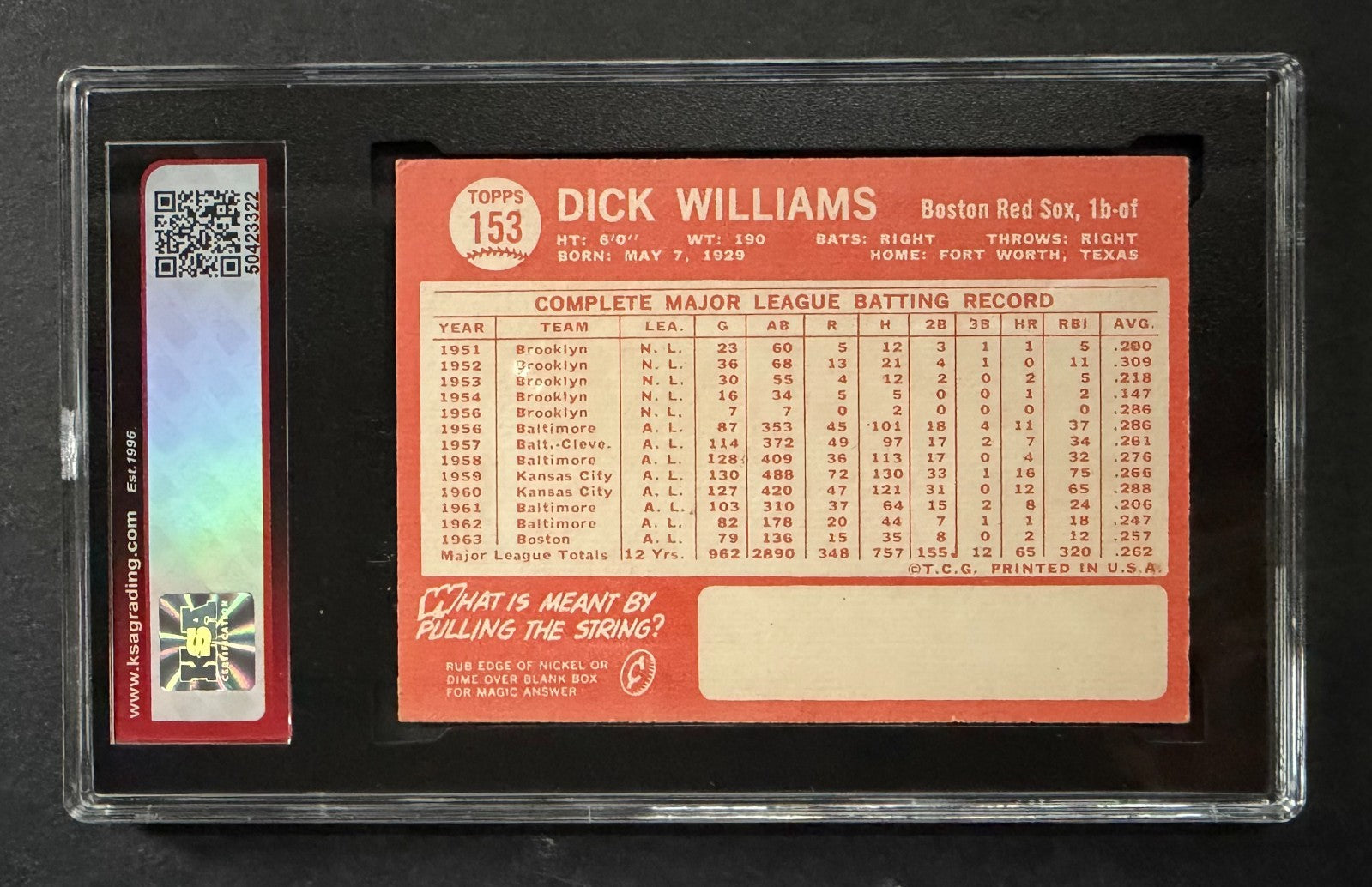 1964 Topps #153 Dick Williams Boston Red Sox Baseball Card KSA 5 EX MLB 1B-OF