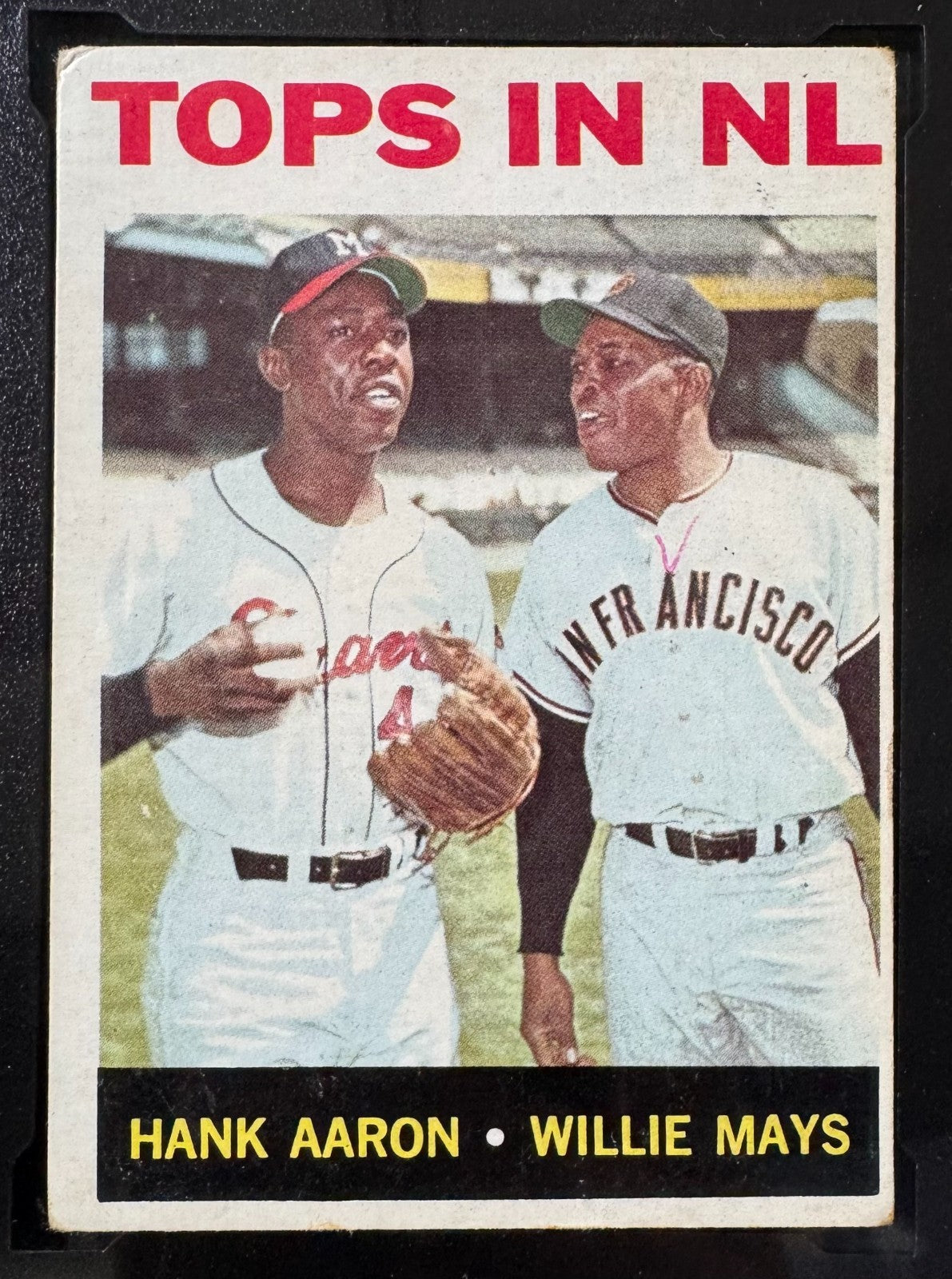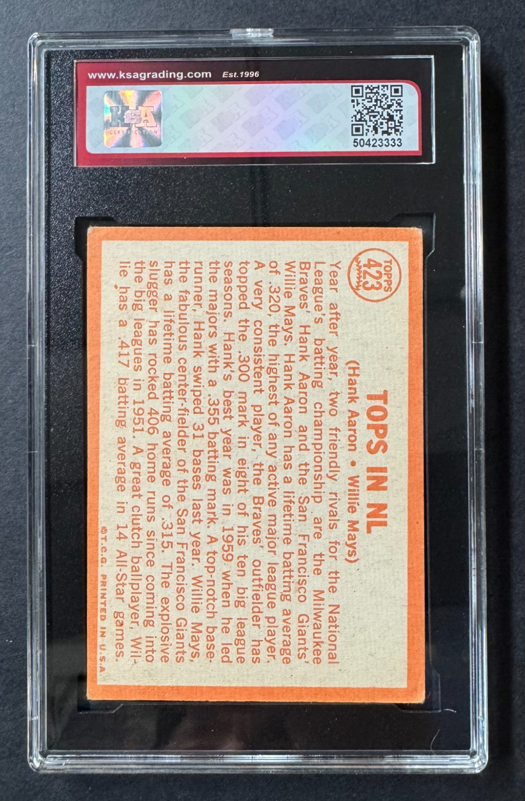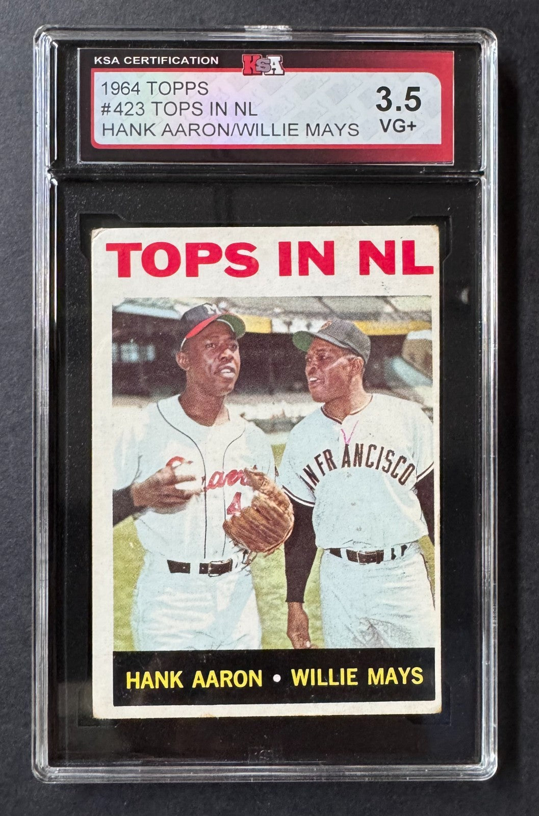 1964 Topps #423 Tops In NL Hank Aaron Willie Mays Baseball Card KSA 3.5 VG+ MLB