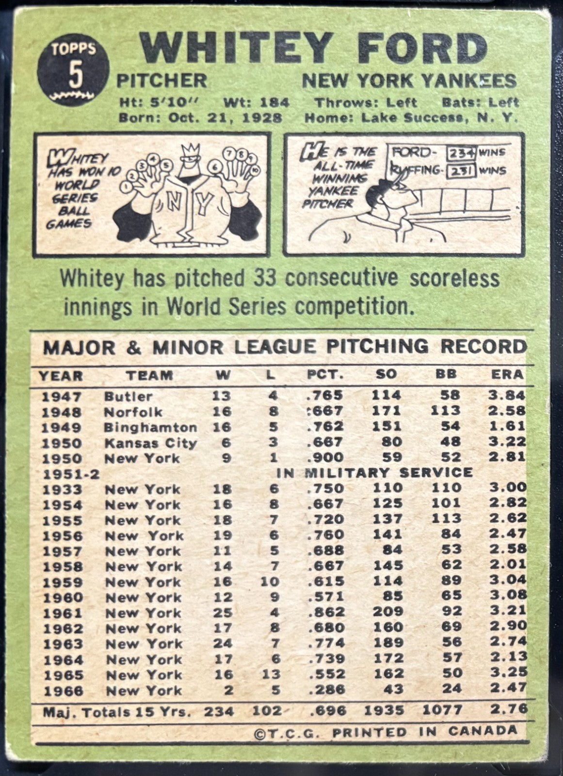 - 1967 O-PEE-CHEE (OPC) #5 Whitey Ford vintage baseball card