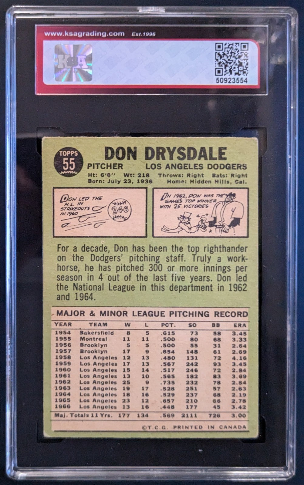 - 1967 O-Pee-Chee #55 Don Drysdale LA Dodgers Baseball Card