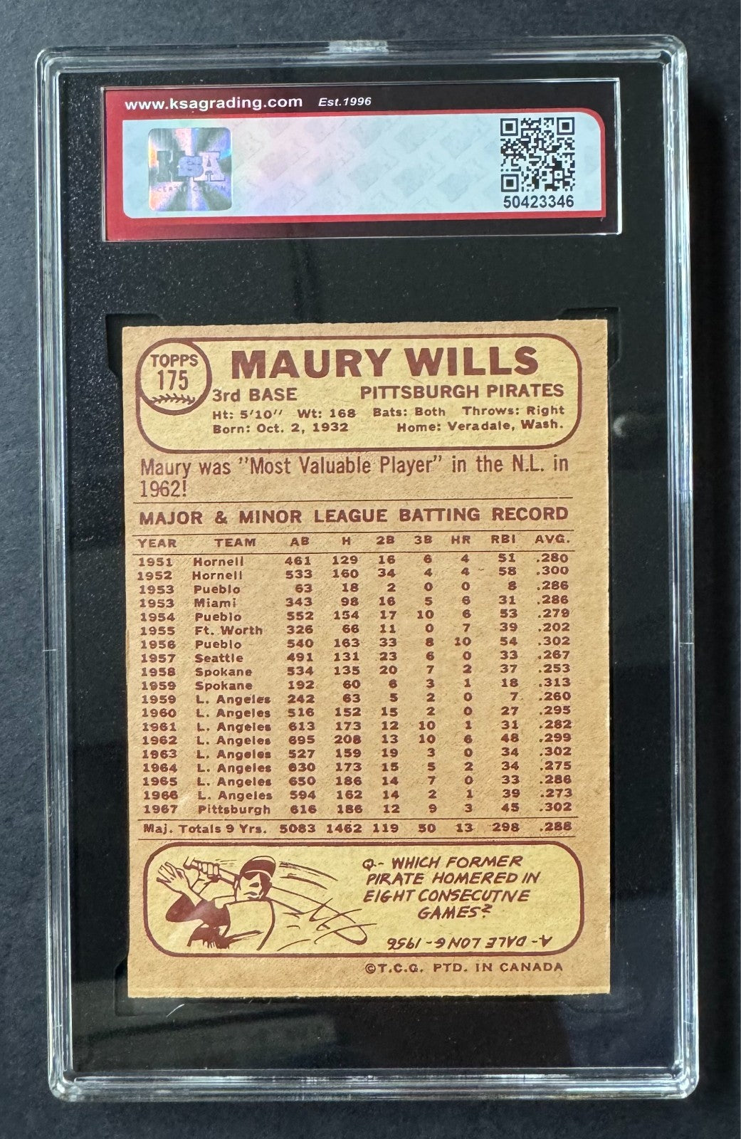 - 1968 O-Pee-Chee #175 Maury Wills Pittsburgh Pirates Baseball Card