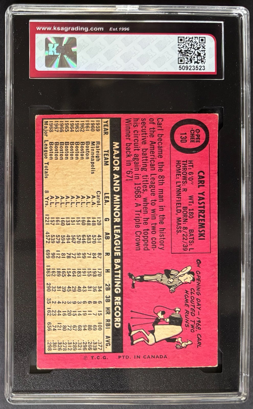 - 1969 O-PEE-CHEE #130 Carl Yastrzemski Boston Red Sox vintage baseball card
