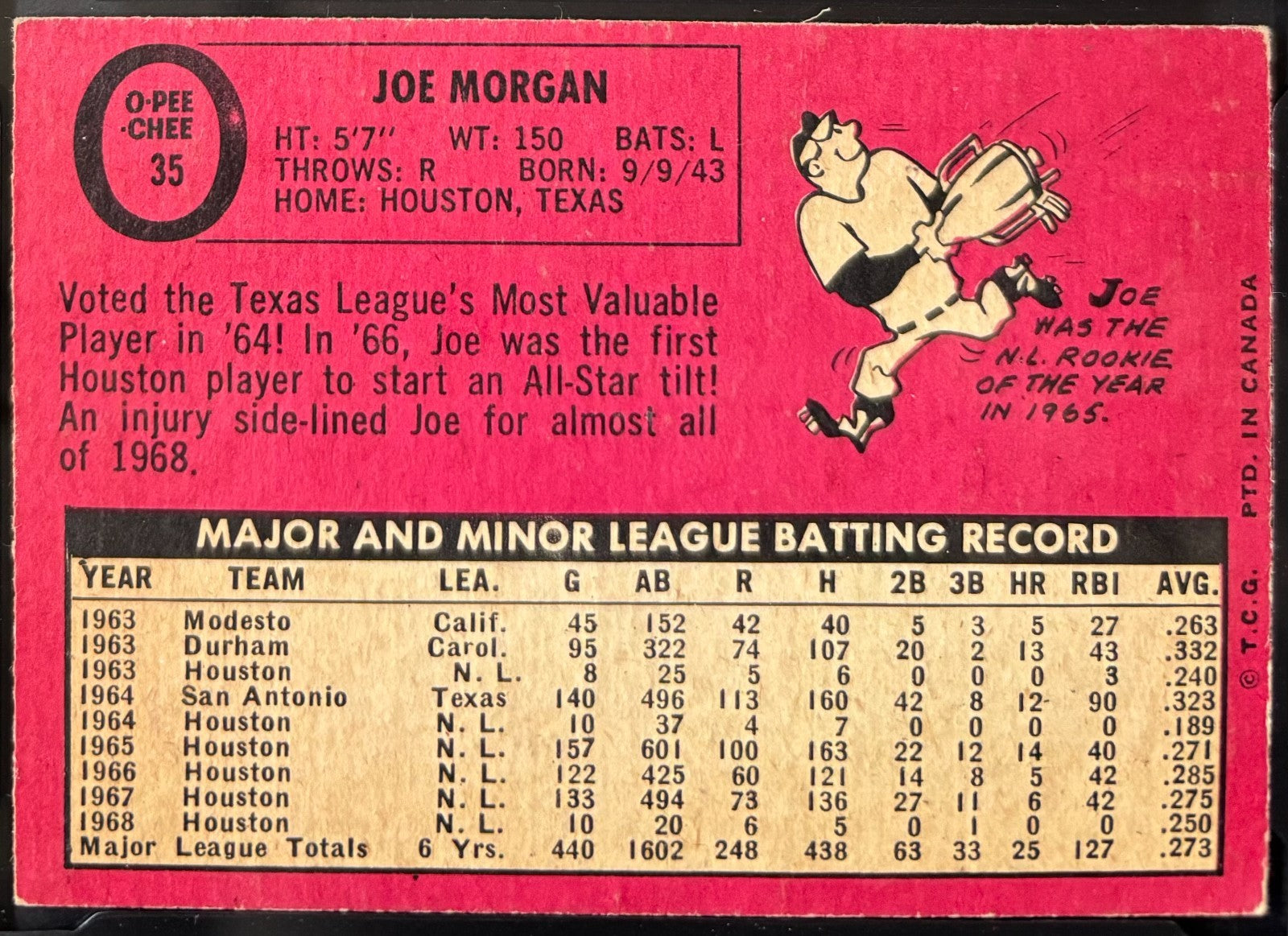 - 1969 O-PEE-CHEE (OPC) #35 Joe Morgan vintage baseball card