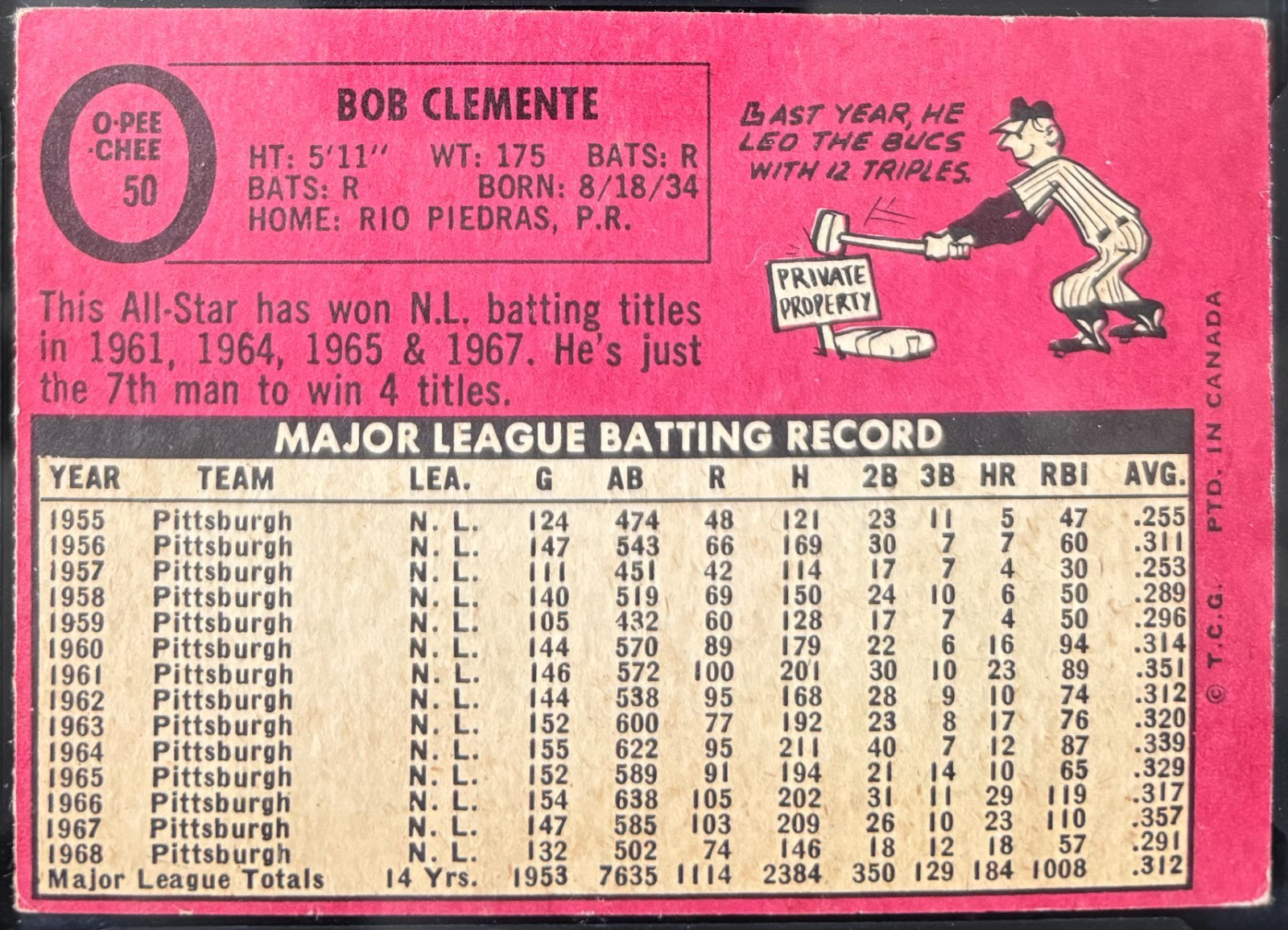 • 1969 O-PEE-CHEE (OPC) #50 Roberto Clemente baseball card