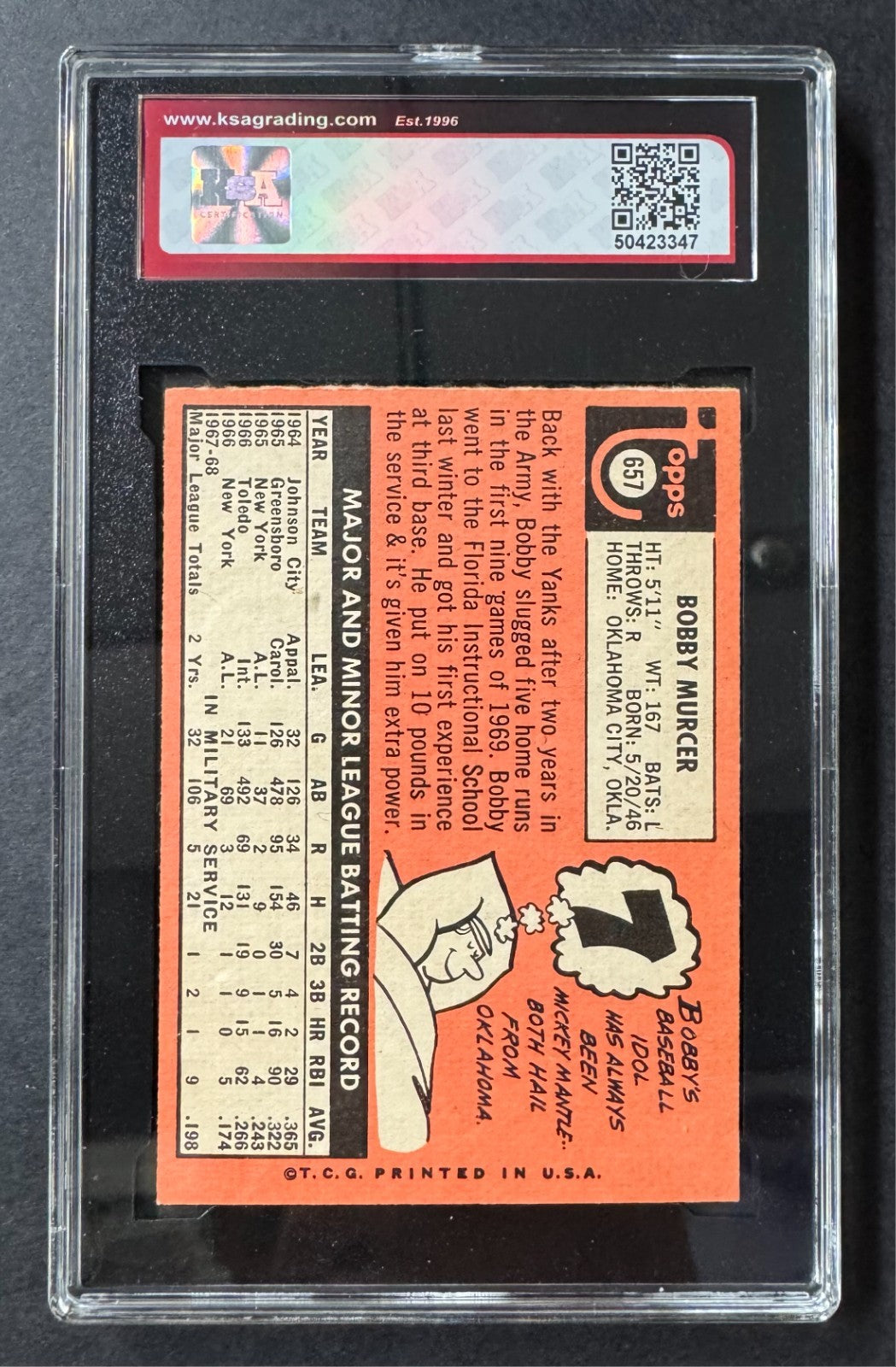 - 1969 Topps #657 Bobby Murcer New York Yankees Baseball Card