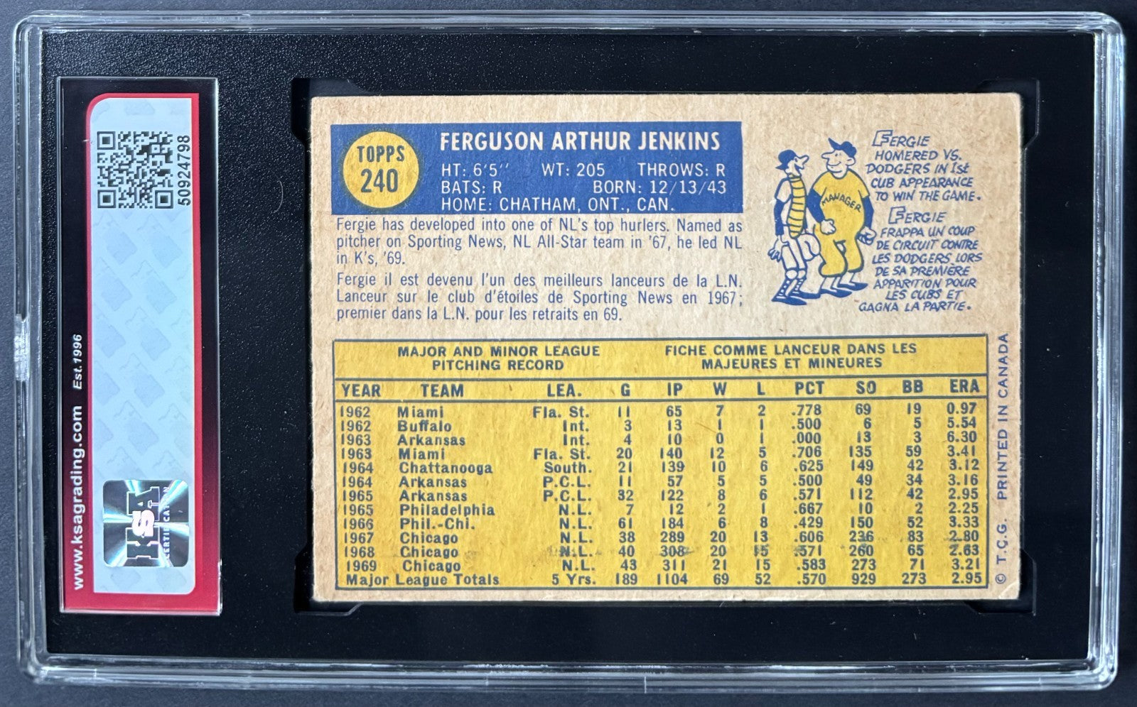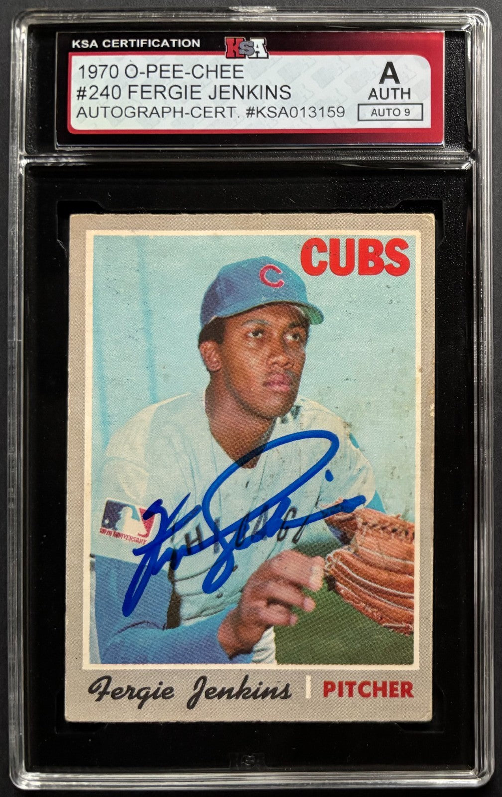 1970 O-Pee-Chee OPC #240 Fergie Jenkins Signed MLB Baseball Card KSA Auto 9