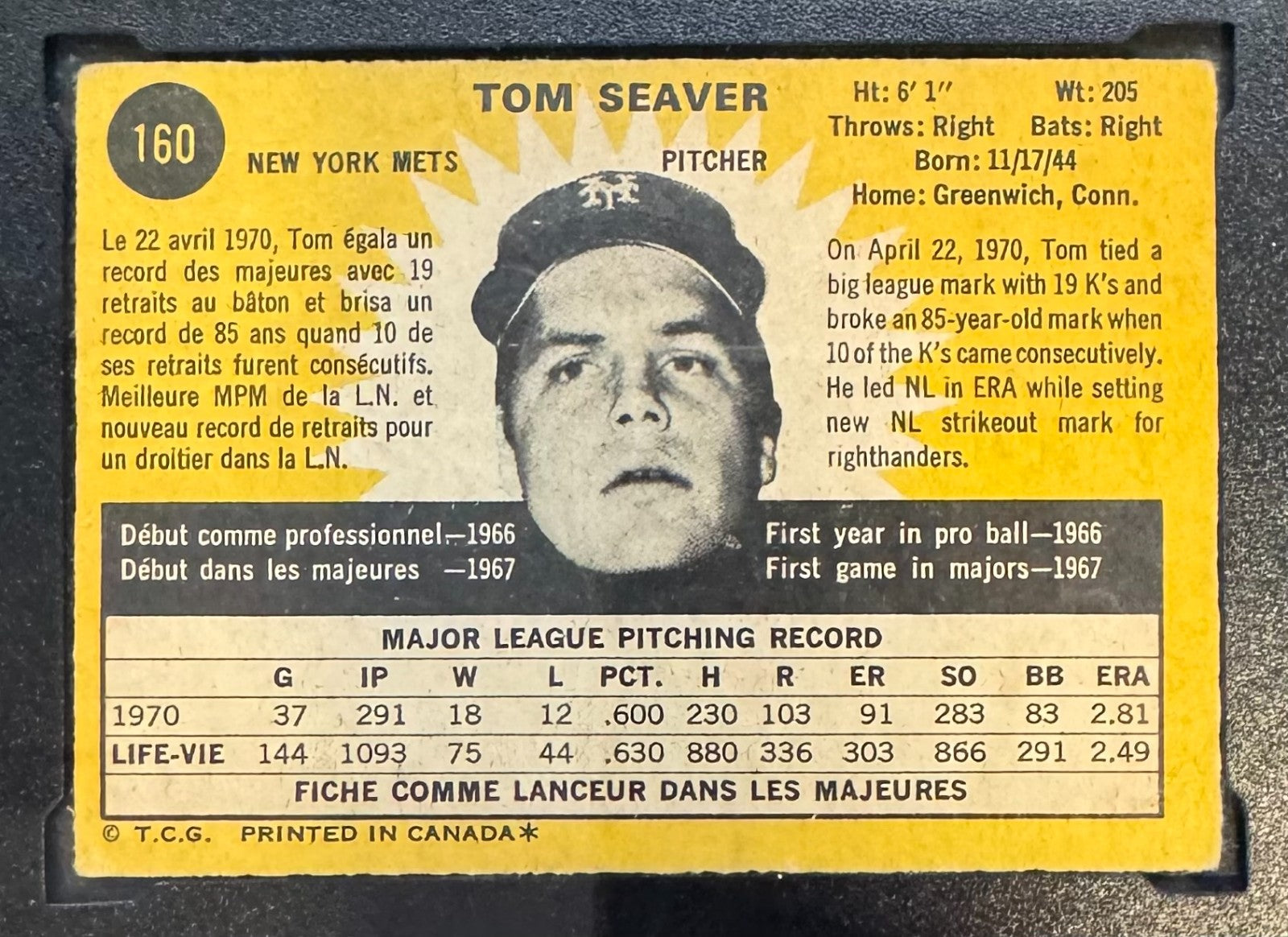 - 1971 O-PEE-CHEE #160 Tom Seaver New York Mets vintage baseball card