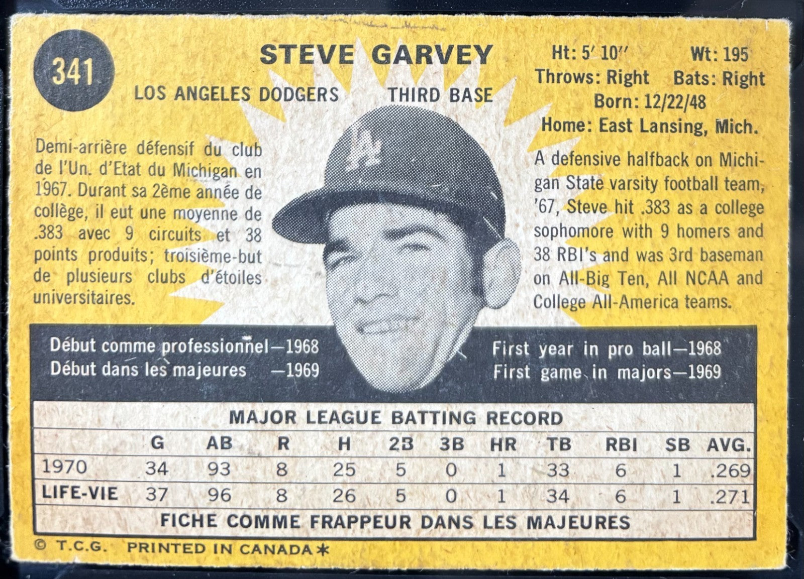 - 1971 O-PEE-CHEE (OPC) #341 Steve Garvey vintage baseball card