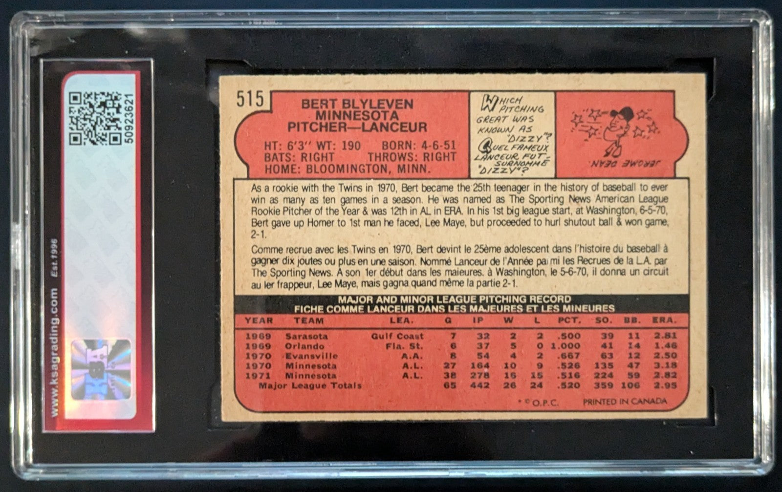 - 1972 O-PEE-CHEE #515 Bert Blyleven Minnesota Twins baseball card