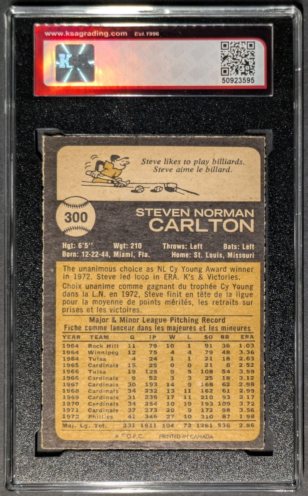 1973 O-Pee-Chee #300 Steve Carlton Philadelphia Phillies Baseball Card KSA 7 NM