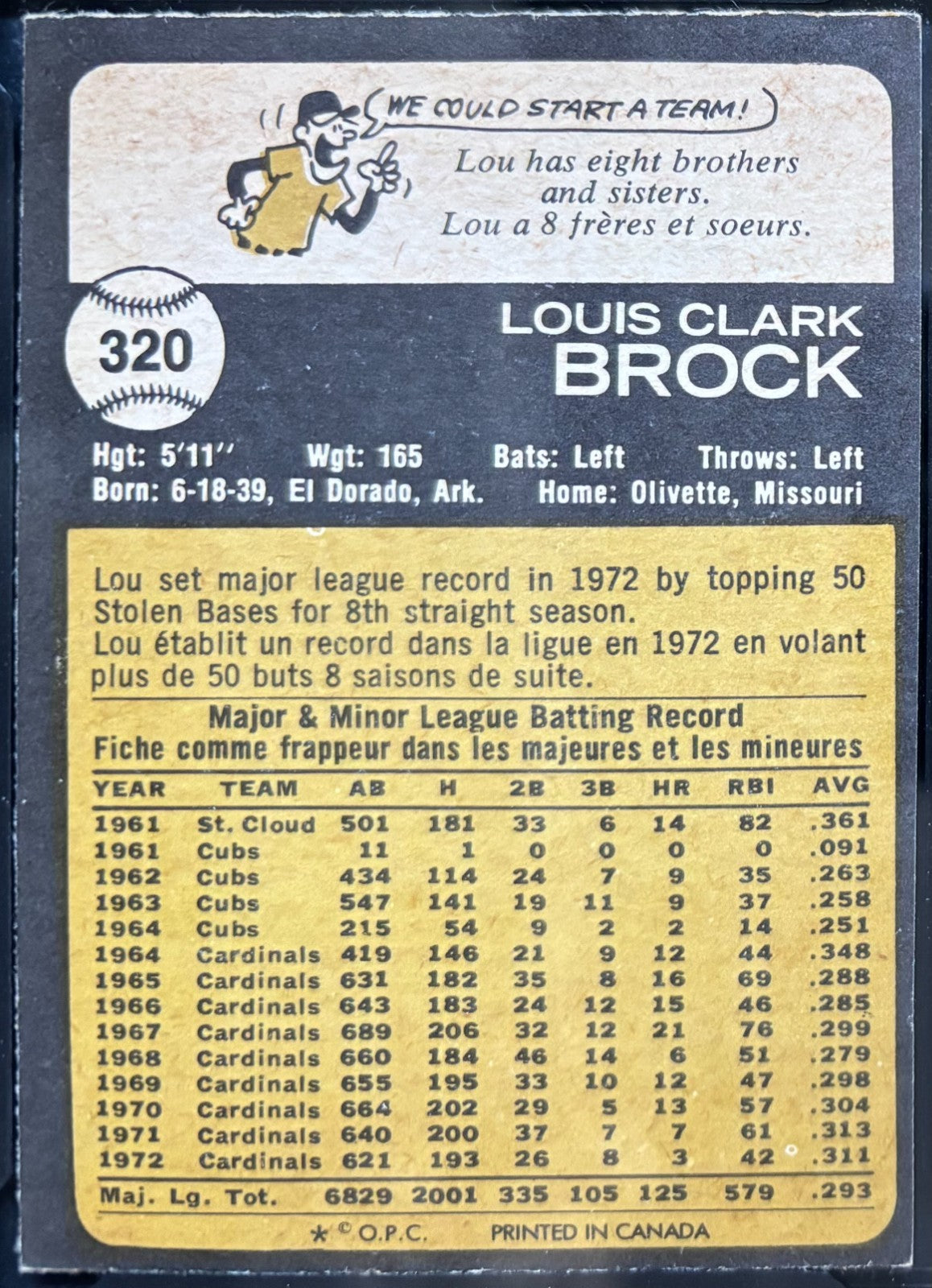 • 1973 O-PEE-CHEE (OPC) #320 Lou Brock vintage baseball card