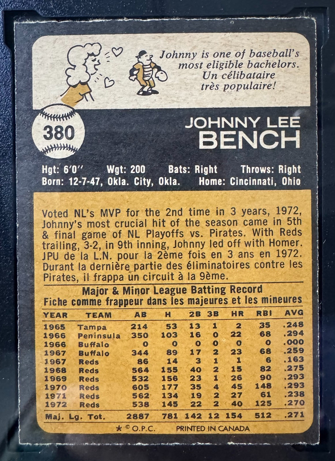 • 1973 O-PEE-CHEE #380 Johnny Bench Cincinnati Reds vintage baseball card