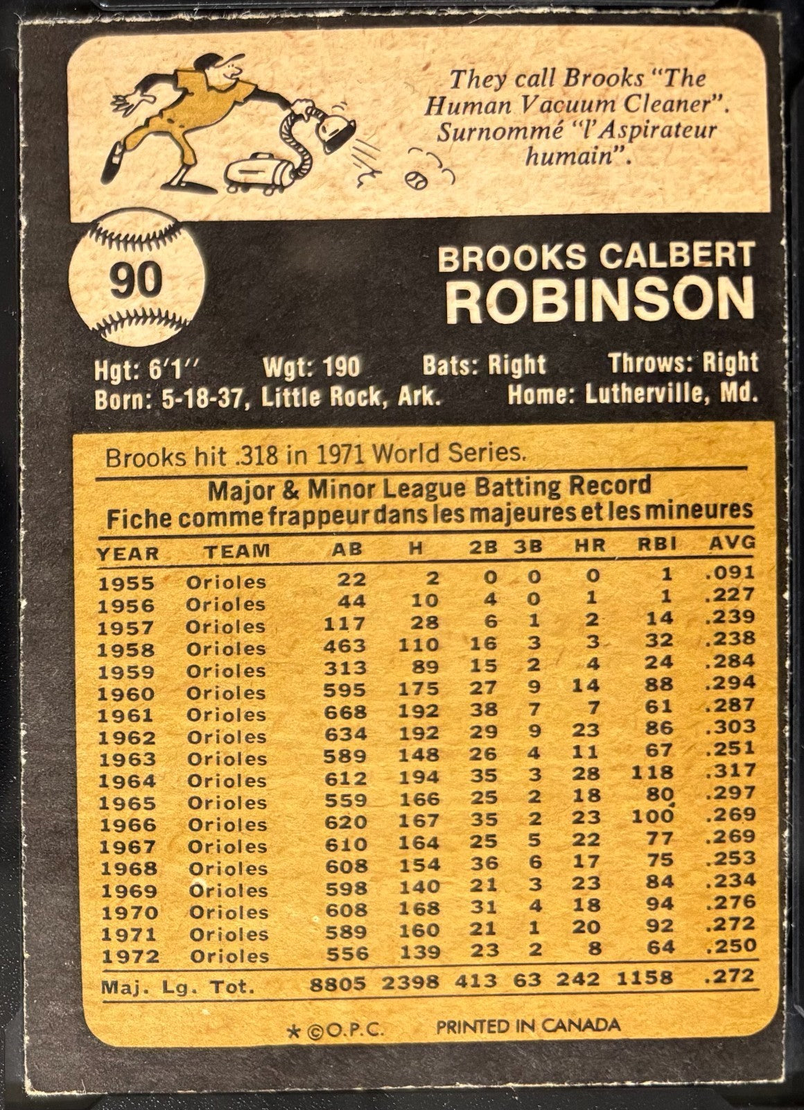 - 1973 O-PEE-CHEE (OPC) #90 Brooks Robinson vintage baseball card