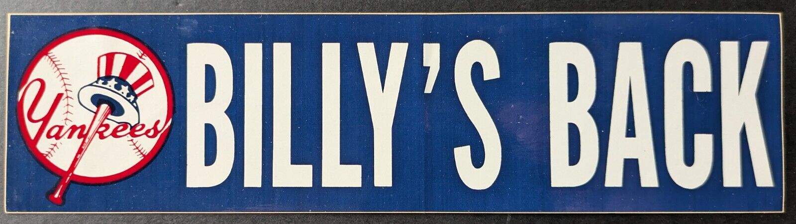 - 1980s New York Yankees "Billy's Back" novelty bumper sticker