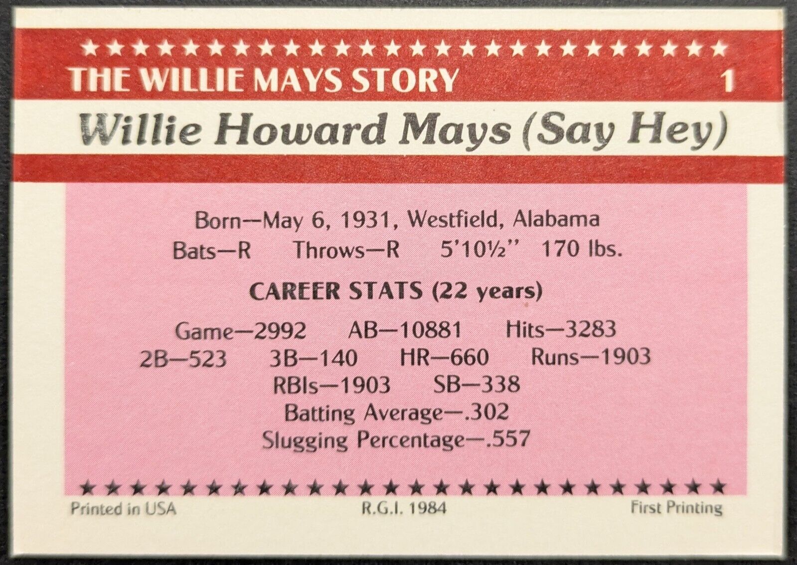 - 1984 signed autographed Renata Glasso 'The Willie Mays Story' card set