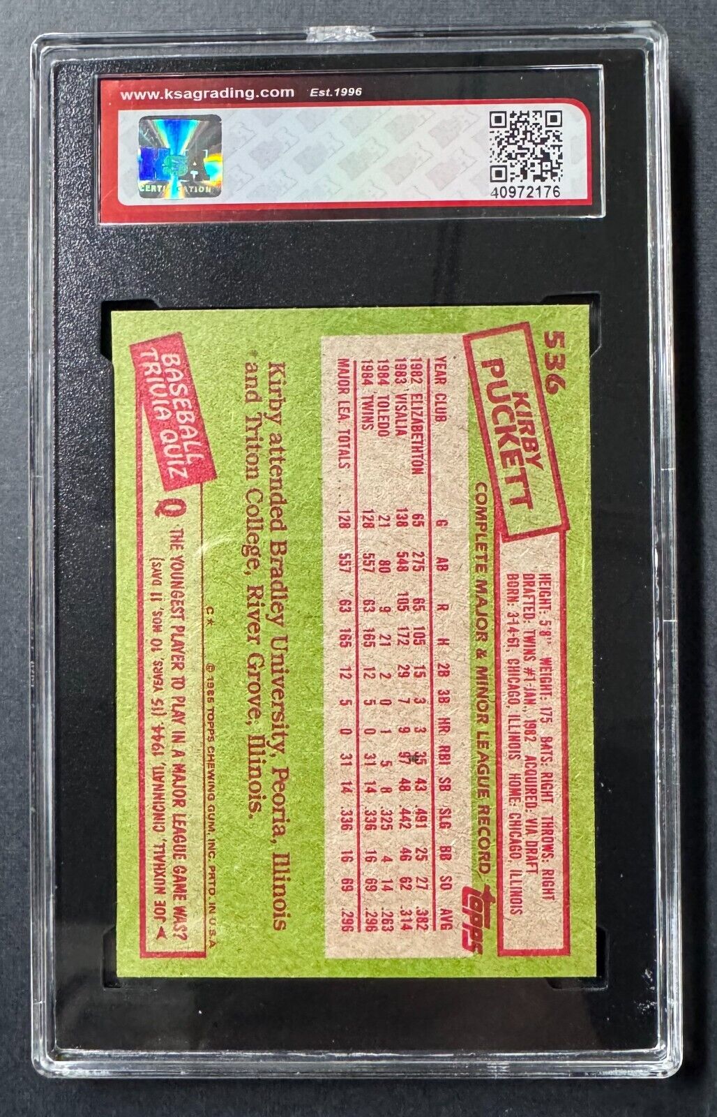 - 1985 Topps MLB #536 Kirby Puckett Minnesota Twins baseball rookie card