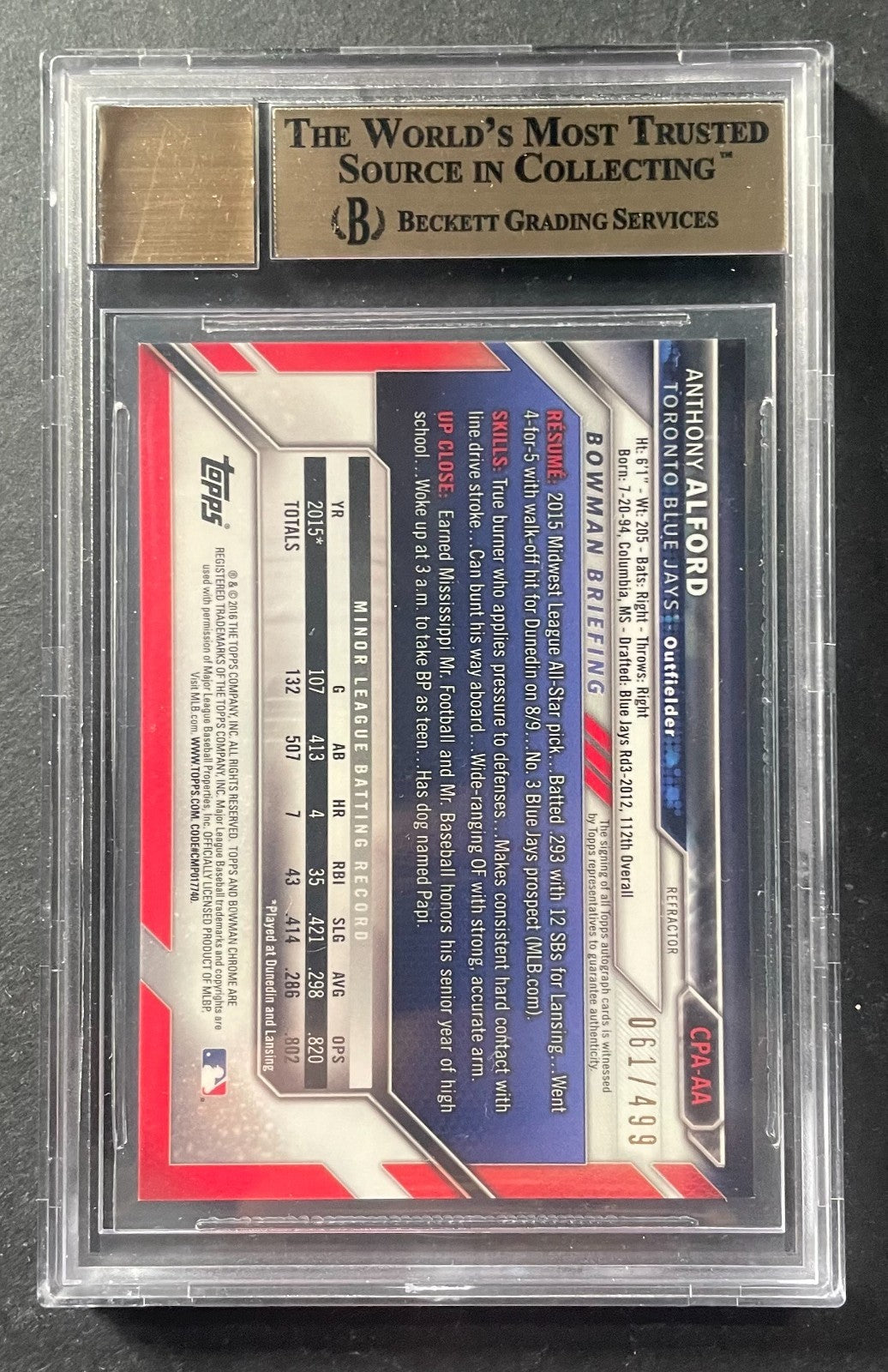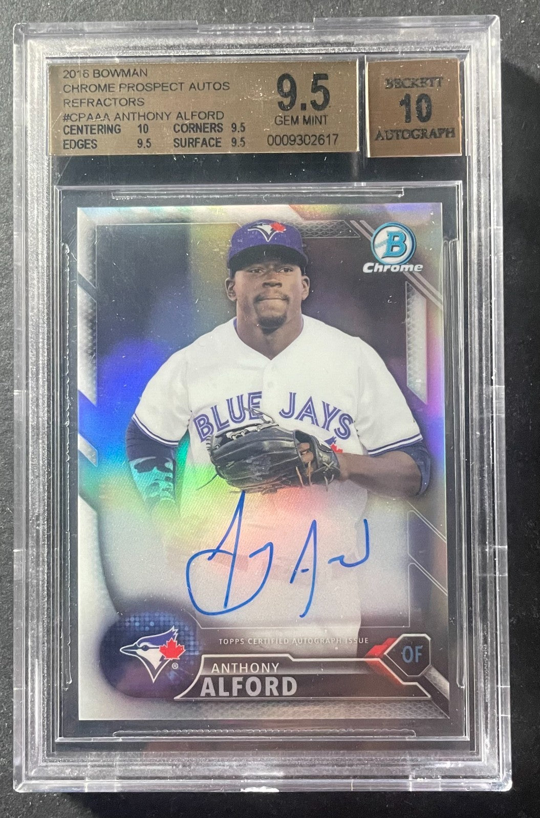 - 2016 Bowman Chrome Prospects Autos Refractors #CPAAA Anthony Alford Beckett 9.5