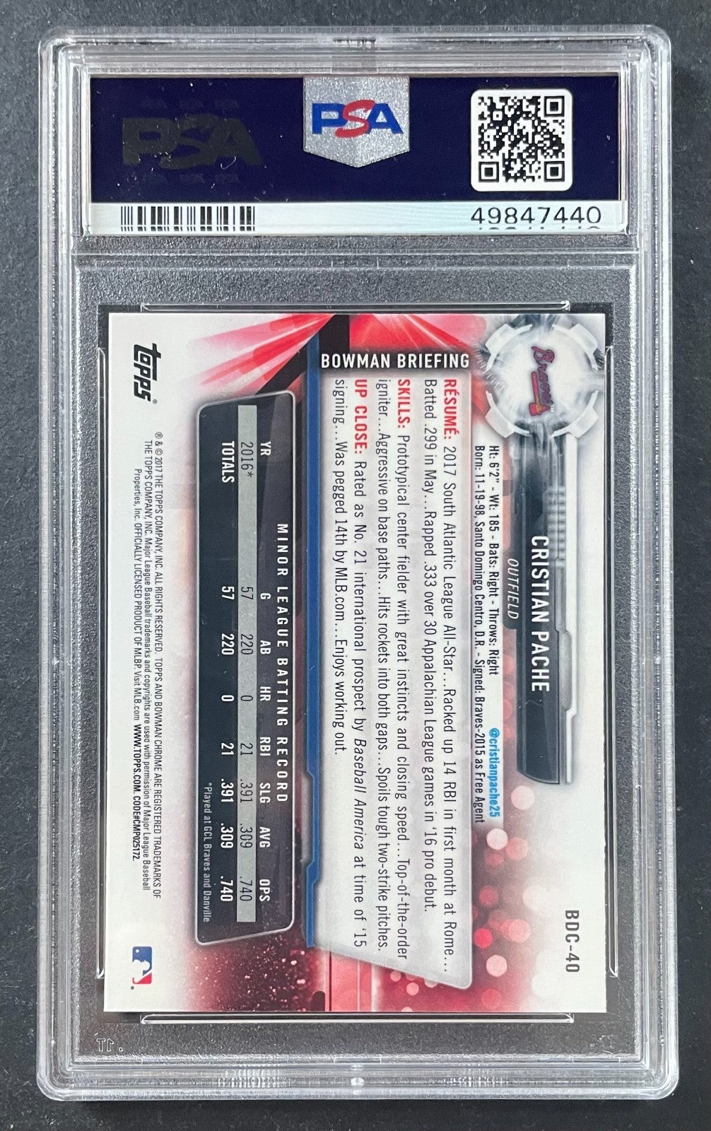 - 2017 Bowman Draft #BDC40 Cristian Pache Baseball Card PSA GEM MT 10 MLB Braves