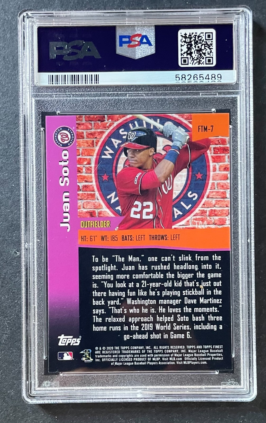 - 2020 Finest #FTM7 Juan Soto Washington Nationals Baseball Card PSA GEM MT 10