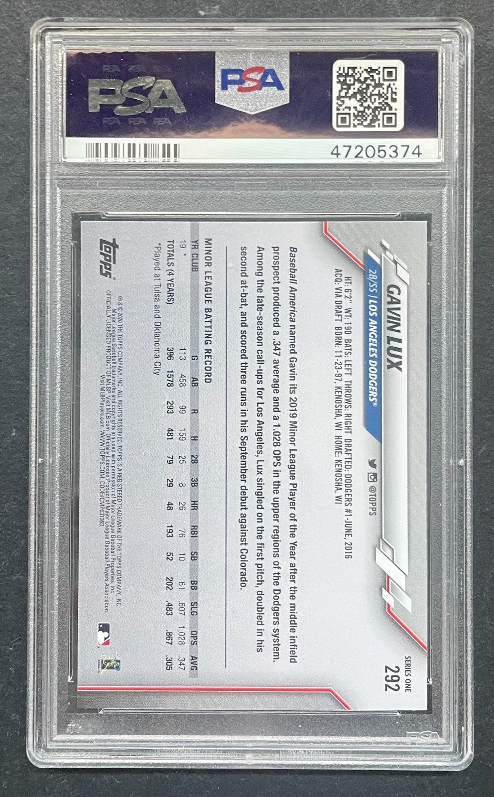 - 2020 Topps #292 Gavin Lux Los Angeles Dodgers Baseball Rookie Card PSA MINT 9 RC