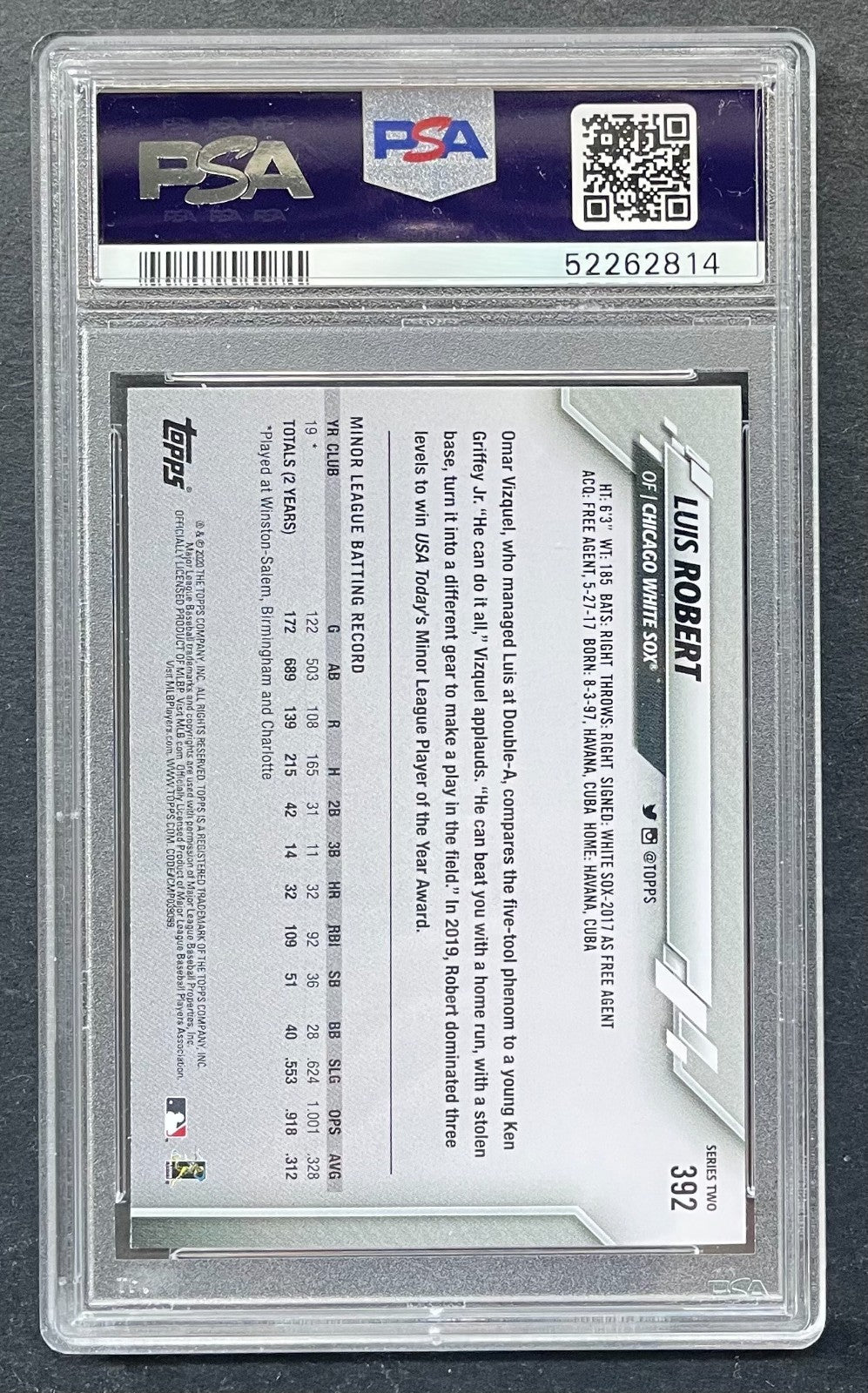 2020 Topps #392 Luis Robert Chicago White Sox Baseball Card PSA GEM MT 10 RC