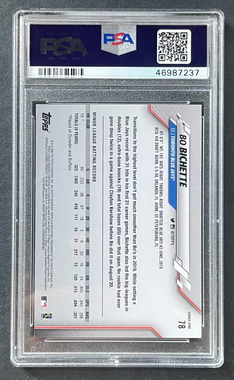 - 2020 Topps #78 Bo Bichette Toronto Blue Jays Baseball Rookie Card PSA MINT 9 RC