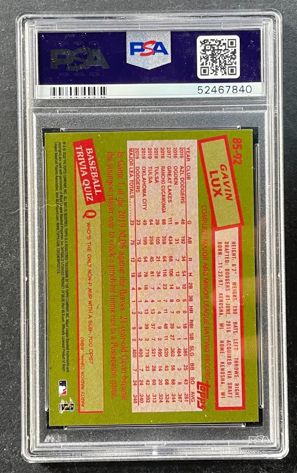- 2020 Topps Now #85-92 Gavin Lux Los Angeles Dodgers Baseball Card PSA MINT 9 RC