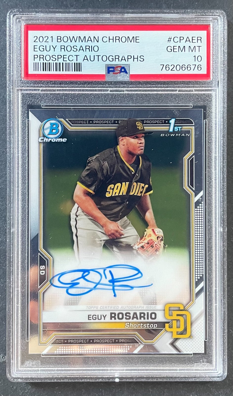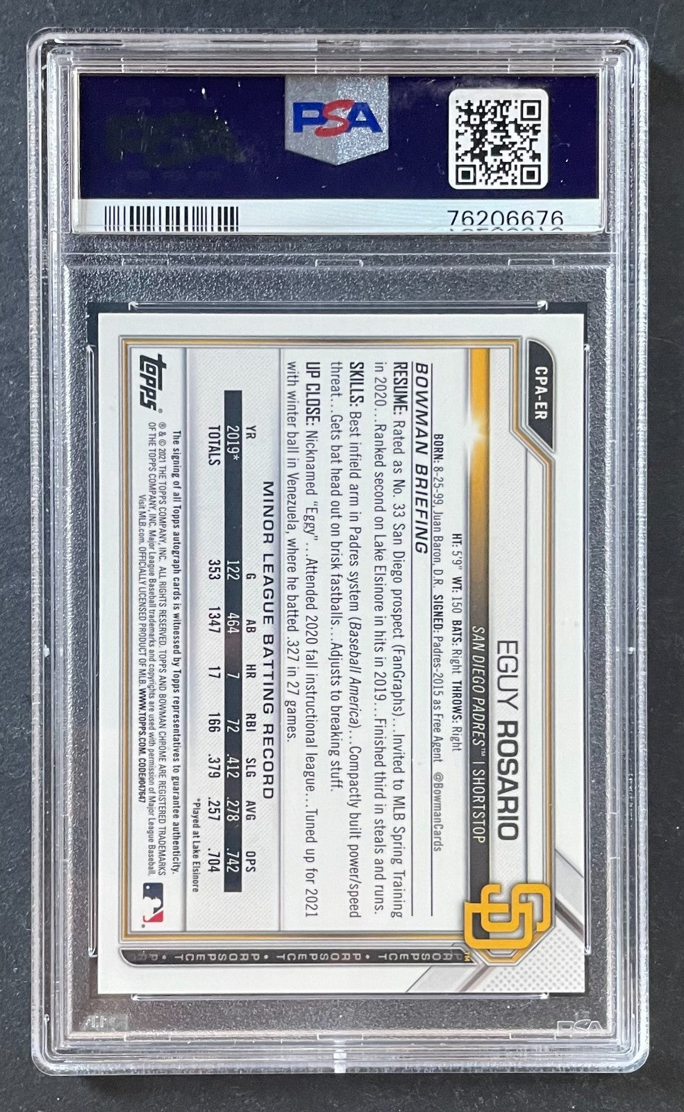 - 2021 Bowman Chrome #CPAER Eguy Rosario San Diego Padres Card PSA GEM MT 10 Auto