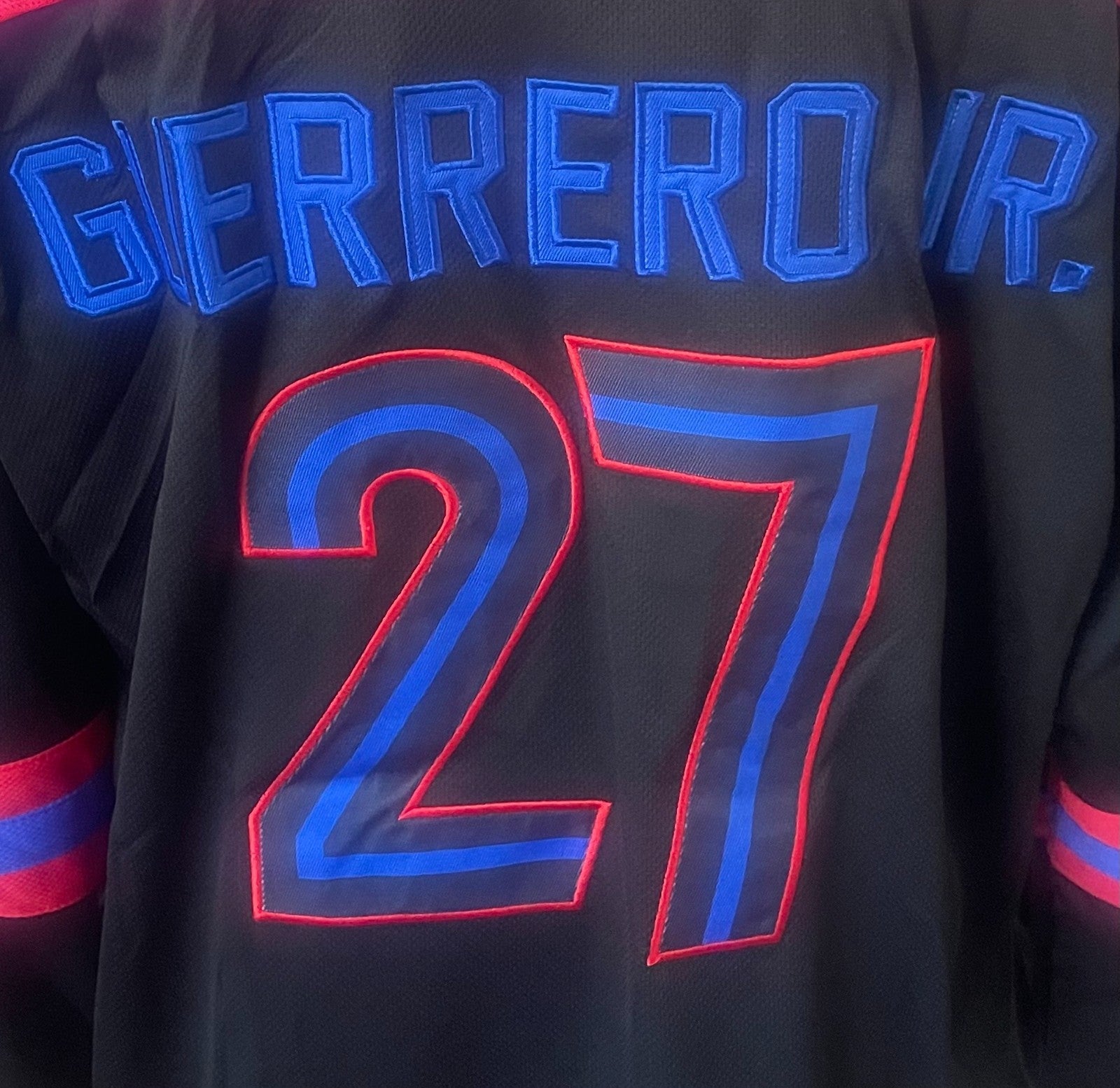 • May 30, 2025 stadium giveaway Vladimir Guerrero Jr. City Connect hockey jersey issued by the Toronto Blue Jays