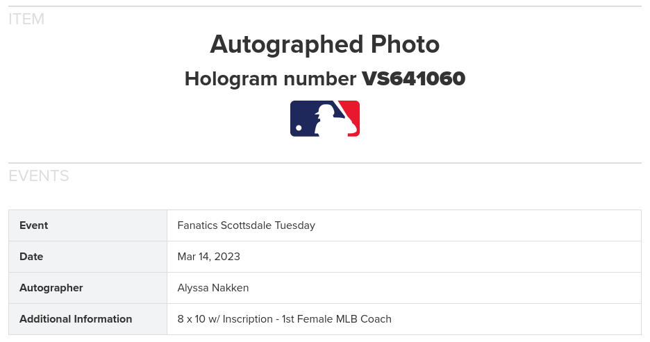 - Signed Autographed photo of Alyssa Nakken who is a professional baseball coach for MLB's San Francisco Giants
