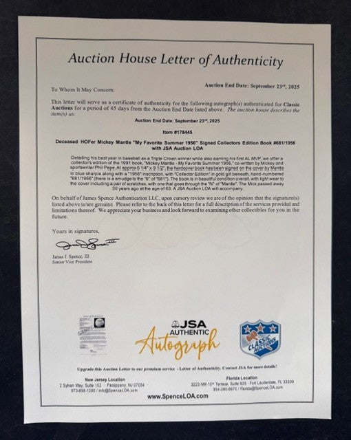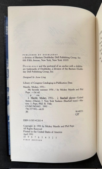 - Mickey Mantle signed autographed hardcover book "My Favorite Summer 1956"