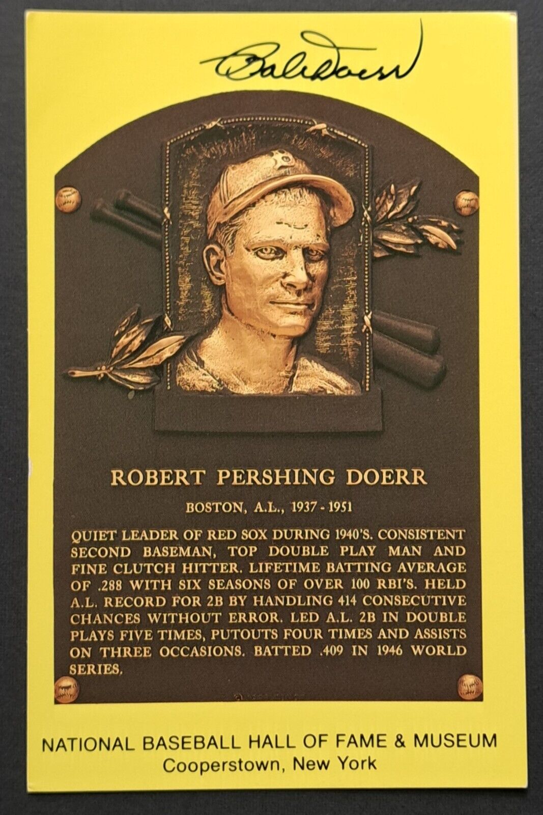 - Robert Pershing Doerr signed/autographed Hall of Fame plaque postcard