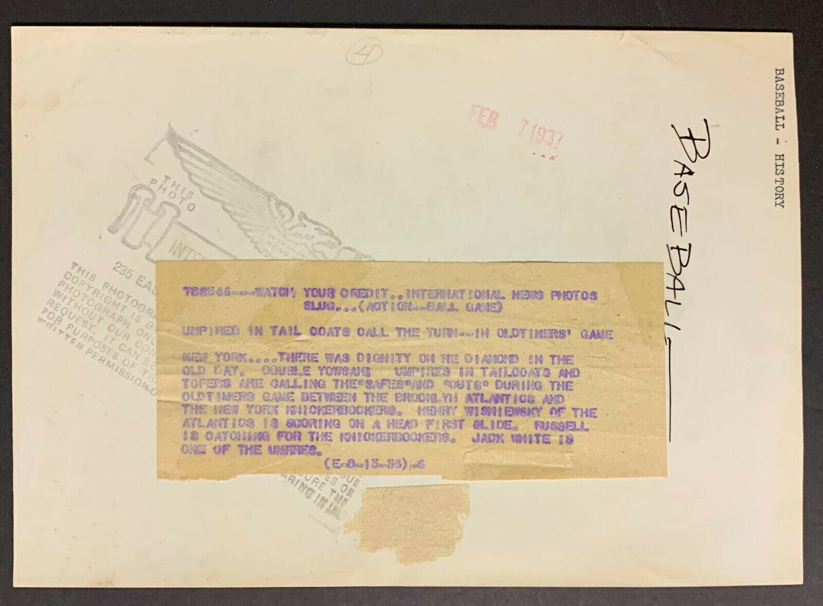 - Issued by International News with a paper captions on the back
