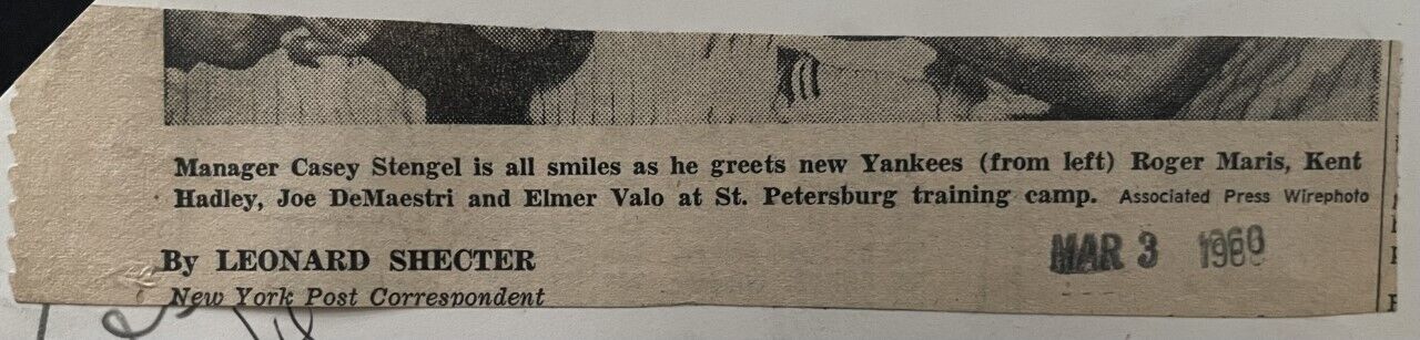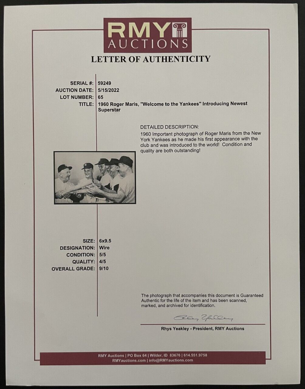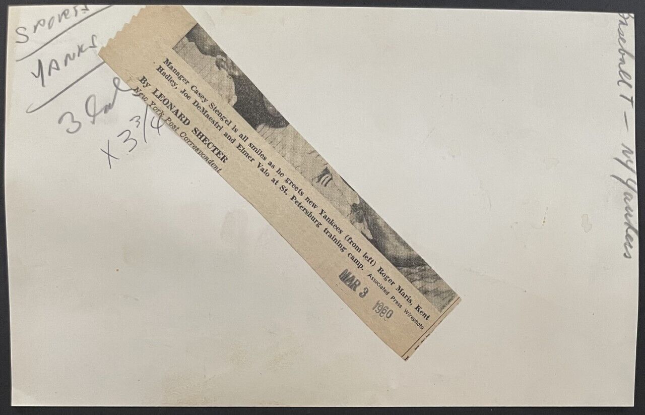 1960 Rare Vintage MLB Baseball Press Photo Roger Maris Welcome To The Yankees