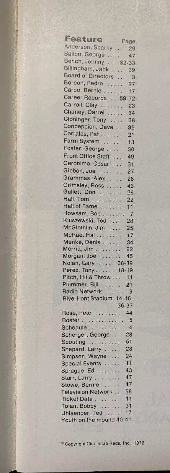- 1972 MLB Cincinnati Reds Complete Baseball Yearbook Magazine Vintage Program