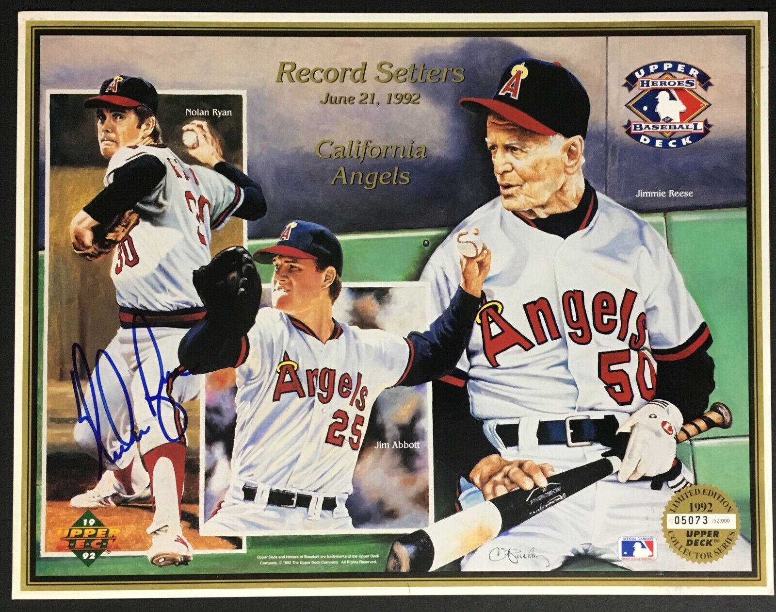 • 1992 Upper Deck Record Setter Baseball Heroes photo card autographed by Nolan Ryan