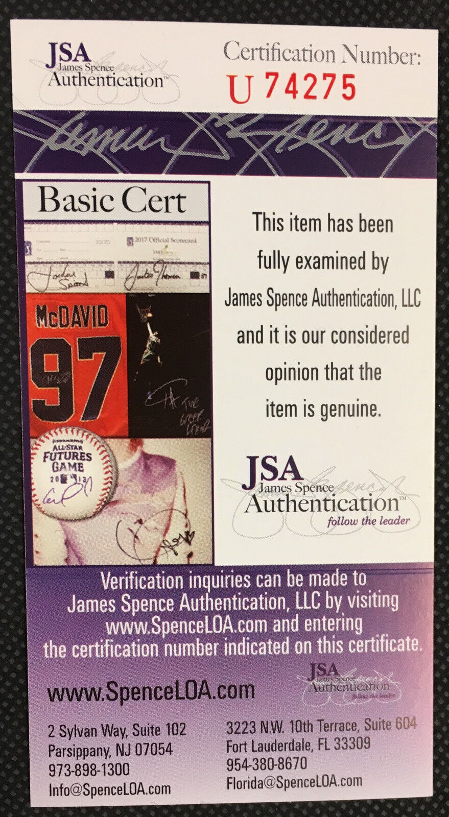 - JSA authenticated - Certification Number U74275